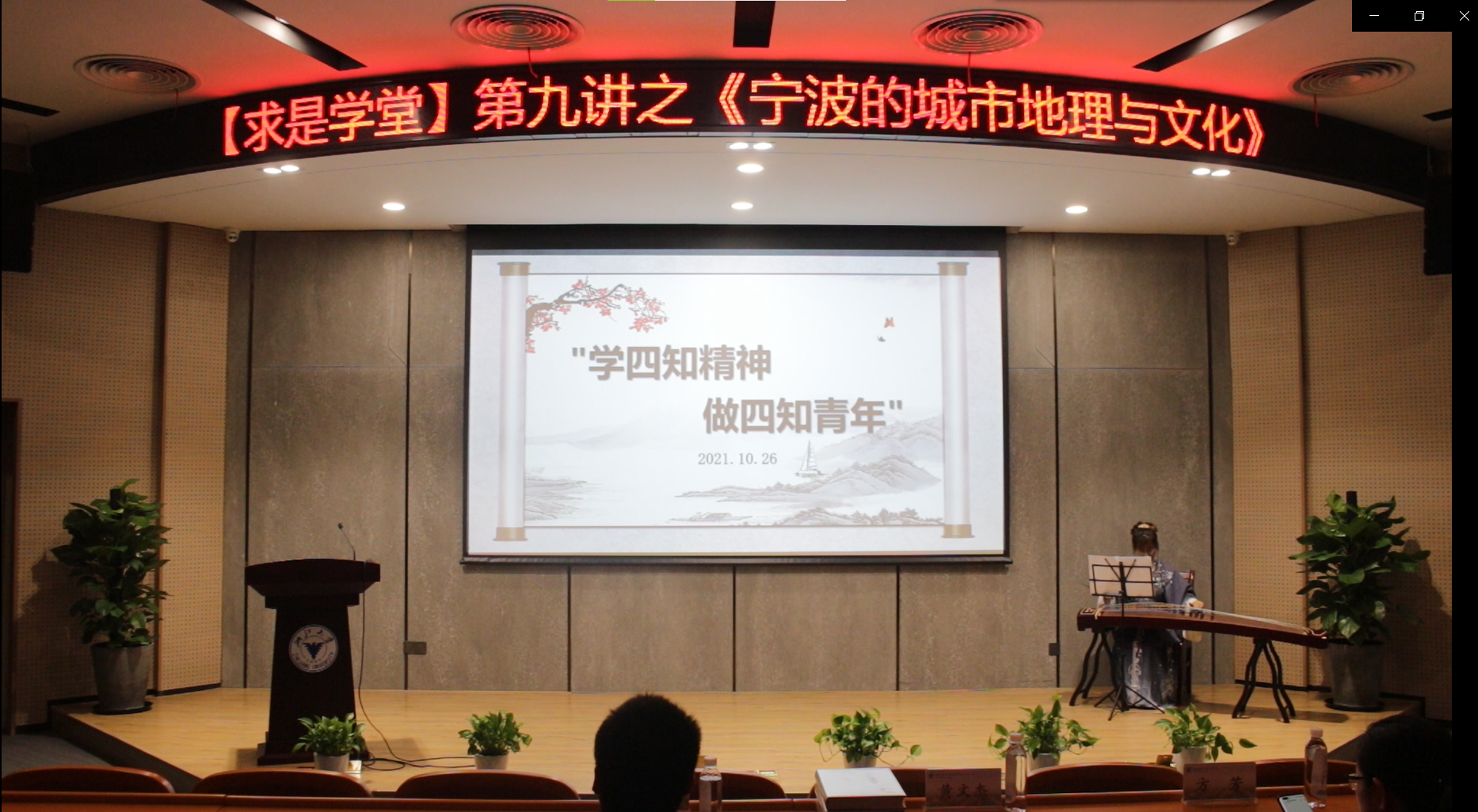 在舞台之上,在屏幕之外,在诵读声里,在讲座之中,听圣贤讲,看校友说……10月26日晚,一场别开生面的四知精神主题教育,在浙大宁波理工学院启新讲堂如期举行。为促进学生深入了解宁波历史文化,真切感知四知精神内涵,推动学生将宁波精神与核心价值观更好的融合互动践行,从而内化于心外化于行,信息学院专门组织开展了这一场融合舞台剧、学术讲座与经典朗读的综合教育活动。