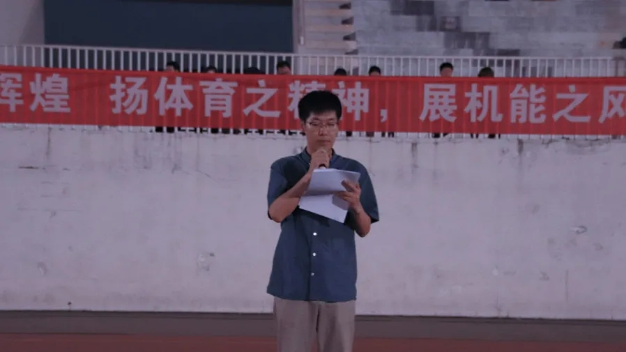首先由董海云老师为运动会致开幕词,董老师鼓励新生们要弘扬机能学院体育强院的优良传统,同时也提醒运动员们在比赛中要将安全放在第一位,最后预祝同学们在今年运动会上能再创辉煌,再创佳绩。董老师的一席话,点燃了现场同学们心中的熊熊斗志,他们定当勇往直前。
