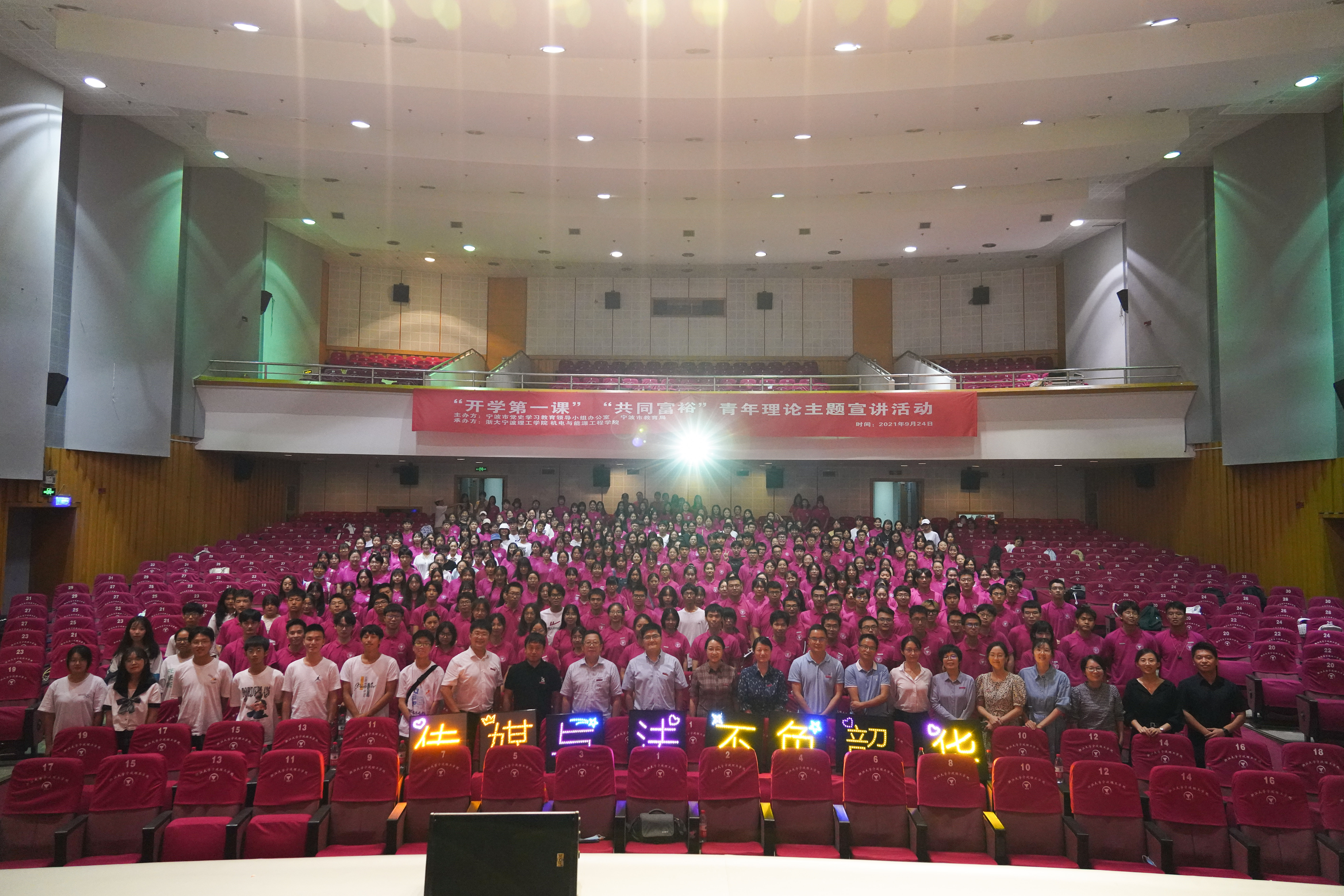 新生代表新闻学212班杜欣遥结合自己对“我们来宁理做什么”这一问题的回答,呼吁同学们明确目标,勤学善思,学以致用,开拓创新,提高素质,抓住机遇,迎接挑战,不负过去的万般磨砺,不负社会对新时代青年的期望共同奔赴星辰大海。在热烈的掌声下,传媒与法学院2021级迎新大会圆满结束。
