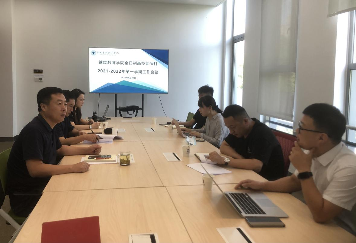 9月22号上午,继续教育学院在学术交流中心206召开全日制高技能培训项目2021-2022学年第一学期工作会议,继续教育学院副院长贾小鹏主持会议,职场创新教学基地、高技能培训教学点负责人和学工、教务老师参加了会议。