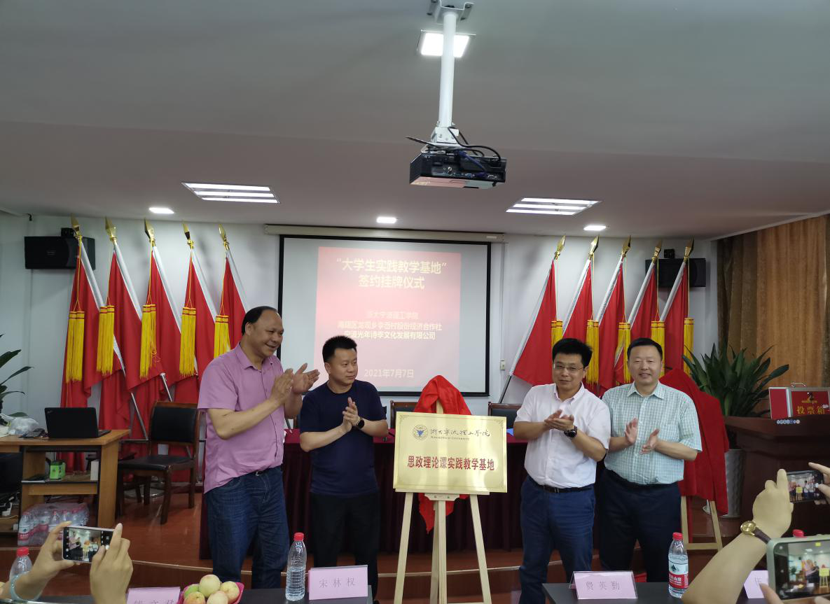 7月7日上午,马克思主义学院与龙观乡李岙村共建“思想政治理论课实践教学基地”签约挂牌仪式在李岙村举行。学校马克思主义学院院长费英勤,龙观乡党委书记宋林权,马克思主义学院党总支书记 副院长伍醒、李岙村党支部书记洪国年、宁波光年诗季文化发展有限公司董事长周松成、马克思主义学院党总支副书记顾琼莹出席。参加活动的还有马克思主义学院的教师代表和浙大宁波理工学院参加暑期社会实践的学生。
