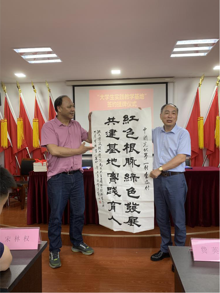 仪式上,费英勤代表学院向李岙村赠送了《寻找抗战》书籍和书法作品,,伍醒与宋林权、洪国年、周松成共同为基地揭牌,顾琼莹与洪国年、周松成签署共建协议。