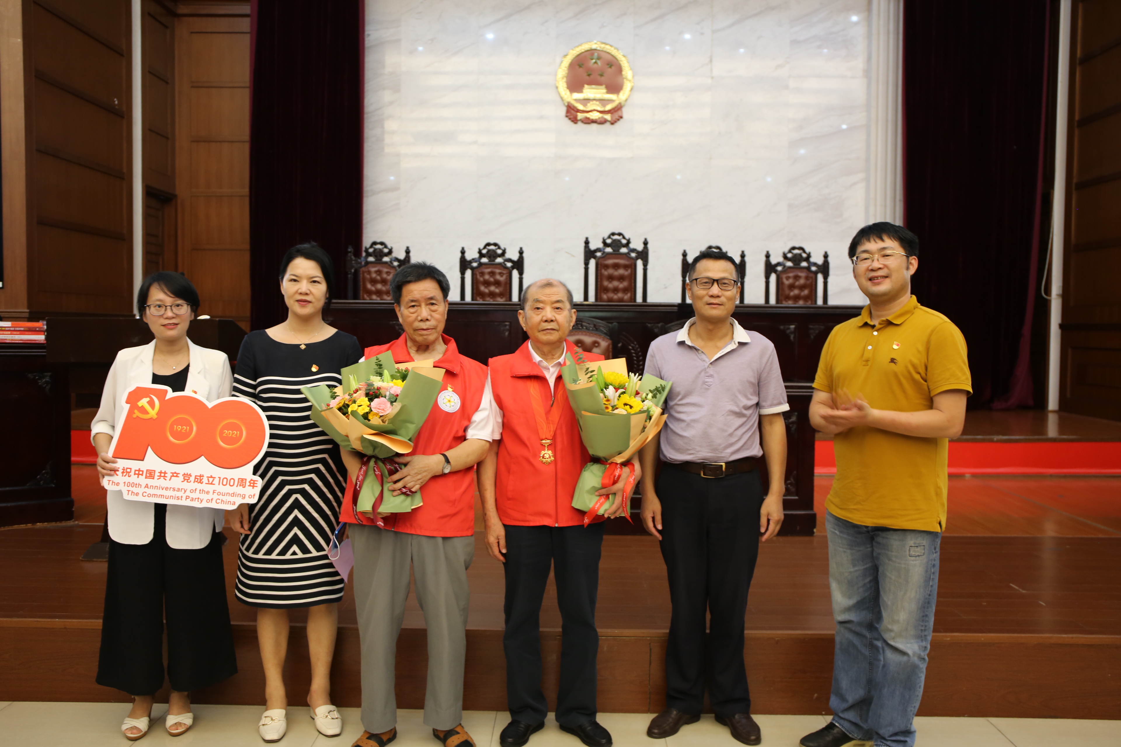 为庆祝建党百年,回顾党的奋斗历程,以实际行动和优异成绩向党献礼,6月21日下午14:00,传媒与法学院“红色讲坛”第六讲“庆祝建党百年,聆听红色故事,汲取奋进力量”在金宗城法学教学中心顺利举行。本次活动到场嘉宾有宁波市军休二中心黄鹂休养所退休干部陈沼,宁波市军体二中心徐戎休养所退休干部黄学祚,宁波市军体二中心徐戎休养所所长张历波,宁波市军体二中心黄鹂休养所副所长傅丰余,浙大宁波理工学院传媒与法学院党委副书记、纪委书记胡鹿鸣。其他参与人员有宁波市军休二中心工作人员、传法学院学工办老师以及全体在校生党员、入党积极分子、入党申请人。活动由传媒与法学院党委组织委员赵红主持。
