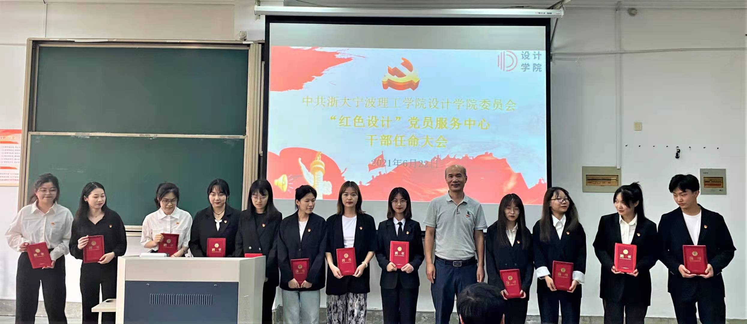 6月22日傍晚,设计学院在sf106举行“红色设计”党员服务中心干部任命大会暨党史教育课,设计学院党委书记吴春、党委副书记叶卫树、各学生党支部书记、全体学生党员及入党积极分子参加本次大会,大会由高雅姝主持。