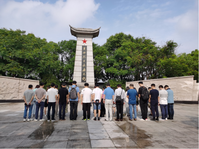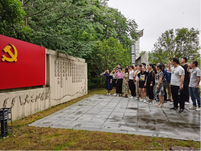 在革命烈士碑前,全体党员默哀一分钟,在静谧中寄托了对革命先烈的无限追思,更坚定了承先辈遗志的理想信念。随后,全体党员面向党旗,举起右拳,重温入党誓词,在庄严的仪式中忆初心、践使命。