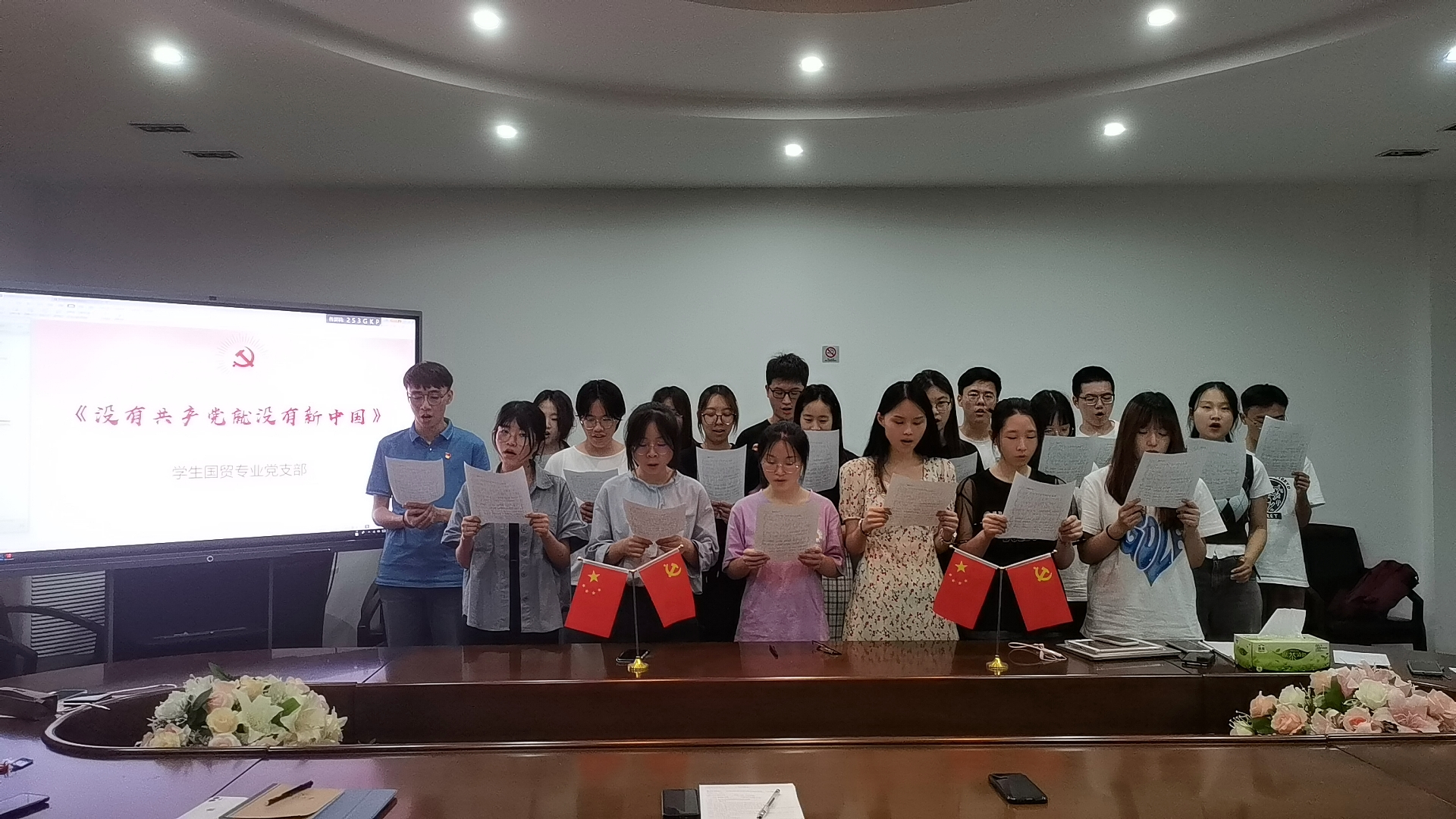 最后,根据《浙大宁波理工学院庆祝建党100周年主题党日活动方案》要求,学生国贸专业党支部全体成员学唱《没有共产党就没有新中国》。在动人的歌声中,本次党支部活动正式结束。