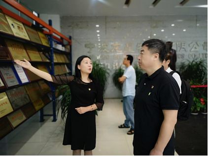 直属单位的党支部学党史主题党日活动首先来到了宁波地区富有影响力的一体化集装箱物流运营商——宁波龙星物流,作为宁波市双强企业党组织、宁波市五星级党组织和北仑区先进基层党组织,龙星物流党支部在企业党建与企业文化融合、创新方面,积累了丰富的经验、取得了亮显的成绩。在企业党支部书记王蕾带领下,直属单位全体党员参观了企业的党史文化长廊,感悟了龙星物流的企业文化及发展历程,交流了企业党建工作的难点、亮点和创新点。
