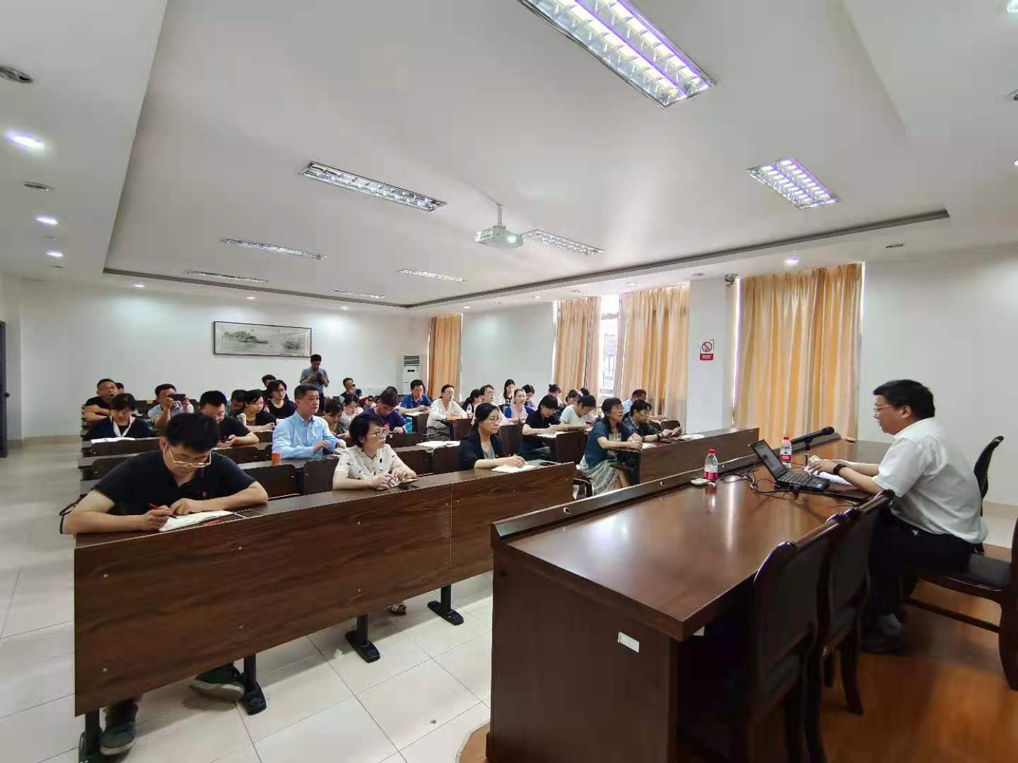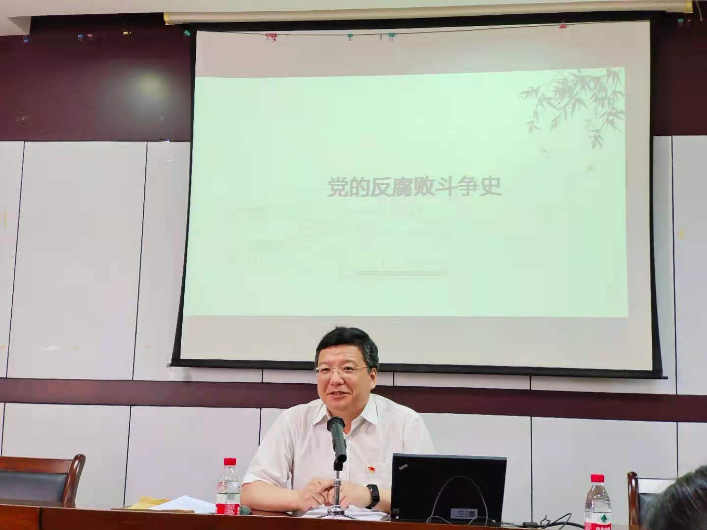 为加强教职工党员廉政、反腐倡廉的思想意识,6月11日中午11点,在SC405,传媒与法学院党委和外语学院联合举办党课,主讲人是校党委委员、纪委书记黄光杰。两个学院的30余名教职工党员们到场参与学习。