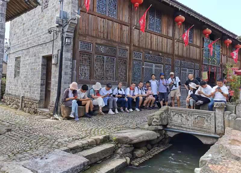 随后,外教赴前童古镇学习了宁波的历史文化和传统民俗。民俗博物馆中陈列的服饰、家具、灯具系列等展现了一个农村的发展文明史,职思其居等古宅描绘了明清时代民俗生活,回字结构的八卦街巷与古建筑群构成了一幅江南乡村图。古镇小桥流水,街径卵石铺就,潺潺溪水环流,令人流连忘返。