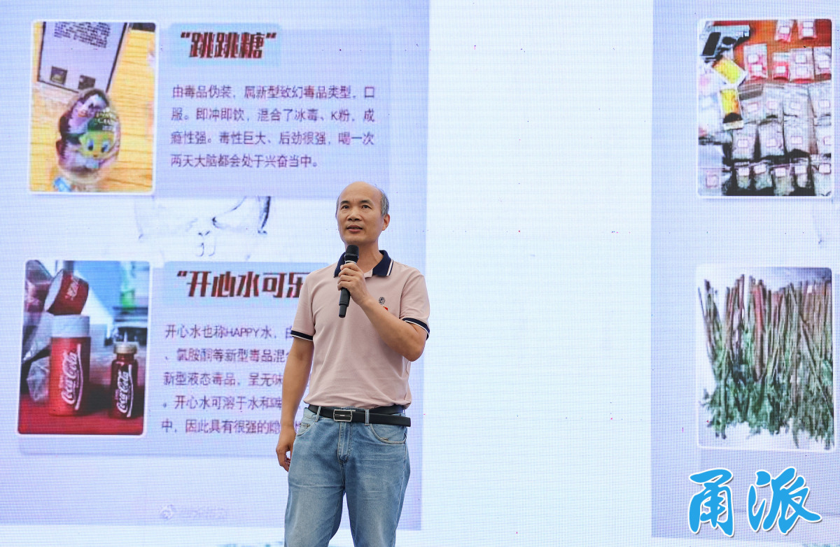 仪式上,第五届浙江省最美禁毒人、首批禁毒讲师叶卫树老师为大家开展禁毒主题教育讲座,他从毒品定义、识别毒品、毒品危害、青少年毒品防范等方面进行深入解读。强调“四禁四记”:即禁种、禁制、禁贩、禁吸;牢记毒品种类、牢记成瘾难戒、牢记毒品四害、牢记沾毒违法。切记“吸毒一口,掉入虎口;远离毒品,珍爱生命”,并带领所有在场师生进行禁毒宣誓。