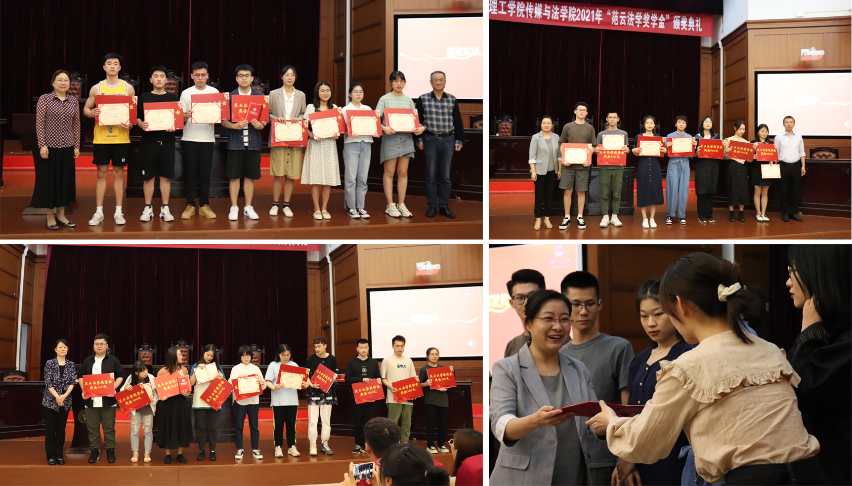 为激励广大学子与新时代同向同行,敢于突破、敢为人先,以聪明才智贡献国家,以开拓进取服务社会,5月26日下午,传媒与法学院于金宗成法学教学中心举办2021年 “范云法学奖学金”颁奖典礼。出席本次典礼的领有浙江波宁律师事务所主任、一级律师范云,启新特聘教授、国务院政府特殊津贴专家金彭年,浙大宁波理工学院党委学工部副部长、学生处副处长郑毅,传媒与法学院党委副书记、副院长朱小红,传媒与法学院副院长韩缨,传媒与法学院党委副书记、纪委书记胡鹿鸣。传法学院学工办老师、2017-2020级学生代表、2021年“范云法学奖学金”获得者们参加了典礼。本次典礼由胡鹿鸣主持。