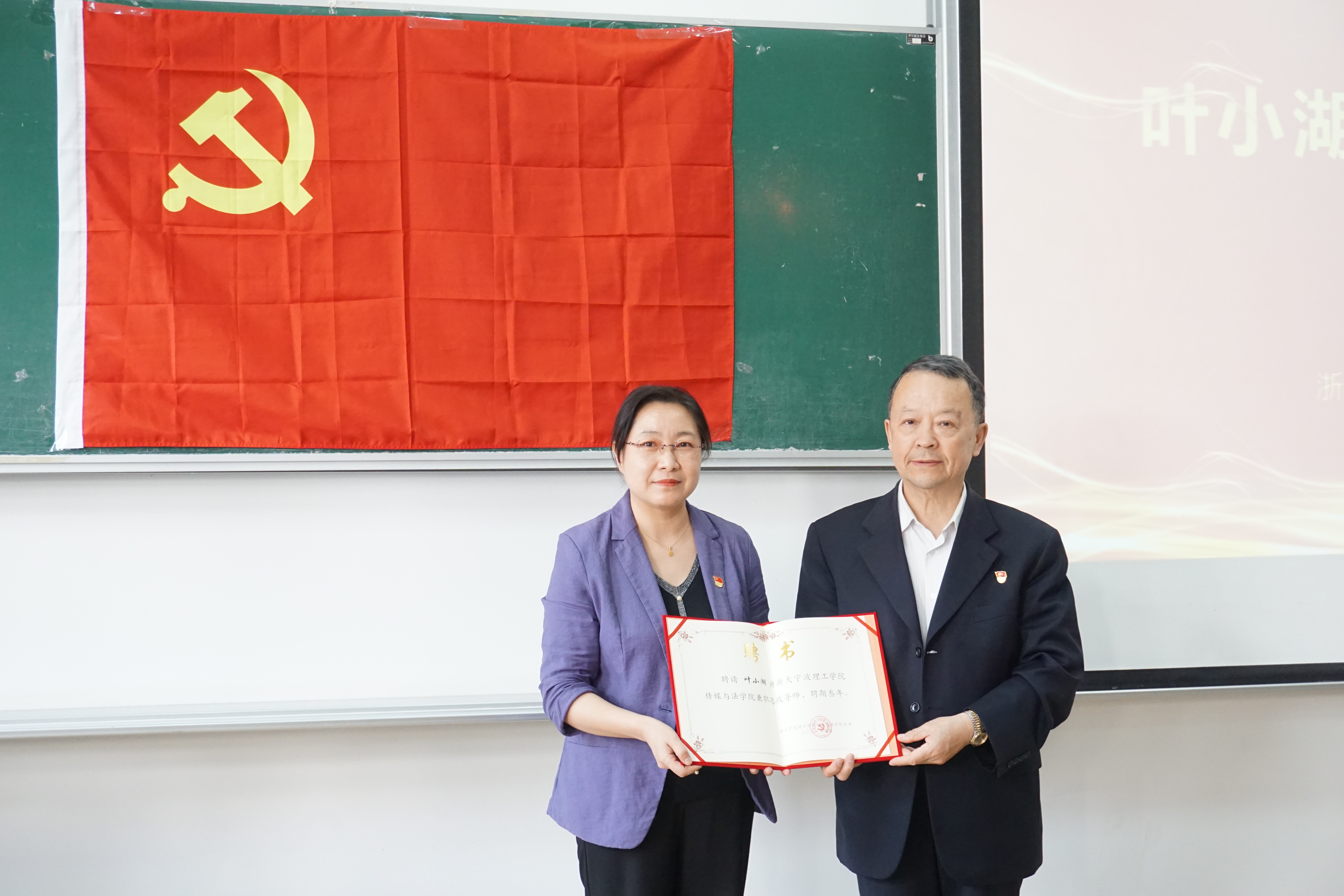 胡鹿鸣介绍叶小湖同志简历,朱小红宣读关于叶小湖同志兼职思政导师的聘任文件并颁发聘书。