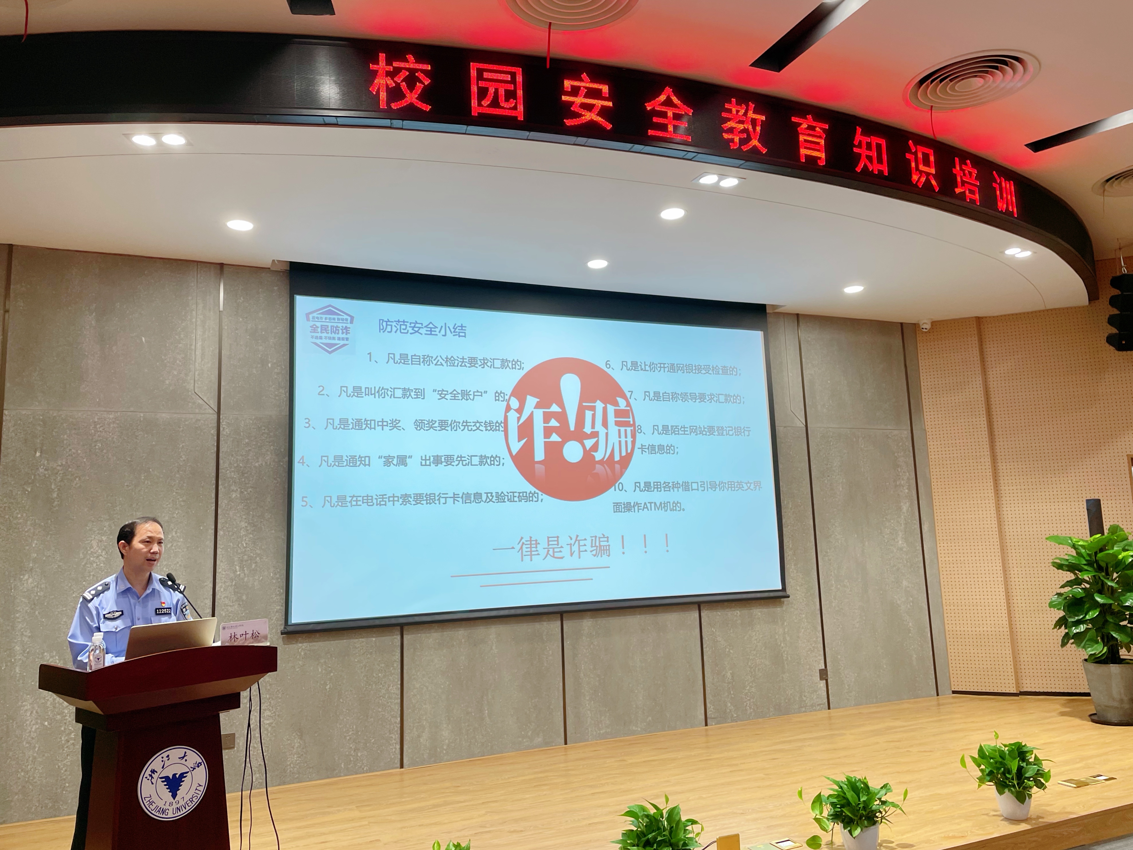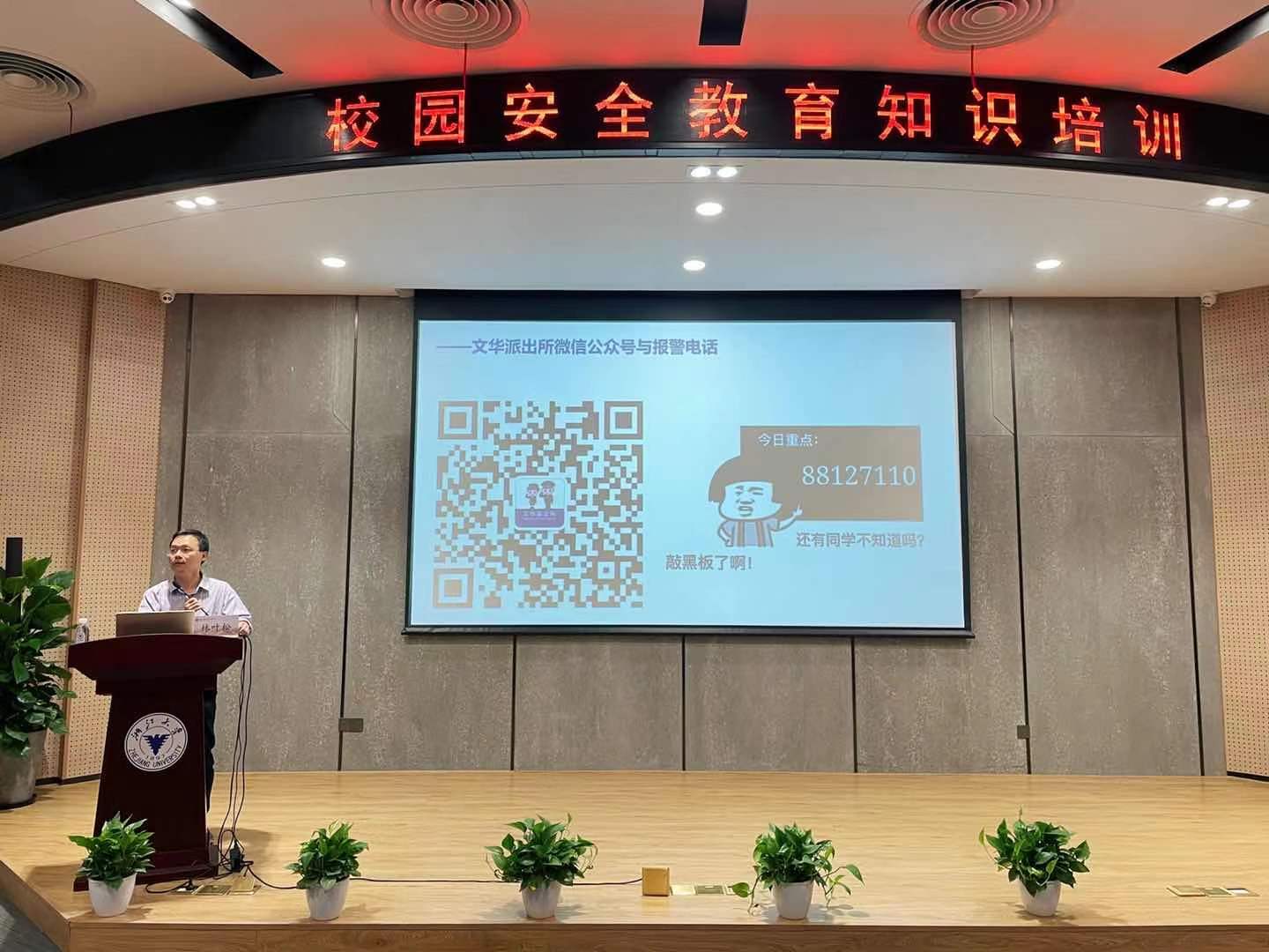 5月21日,由浙大宁波理工学院安全保卫处、文华派出所携手举办的“校园安全教育知识培训——反诈骗宣传教育专场培训”在启新大讲堂举行,全校200余名班级学生安全员参加。培训由安全保卫处副处长陈恩主持。