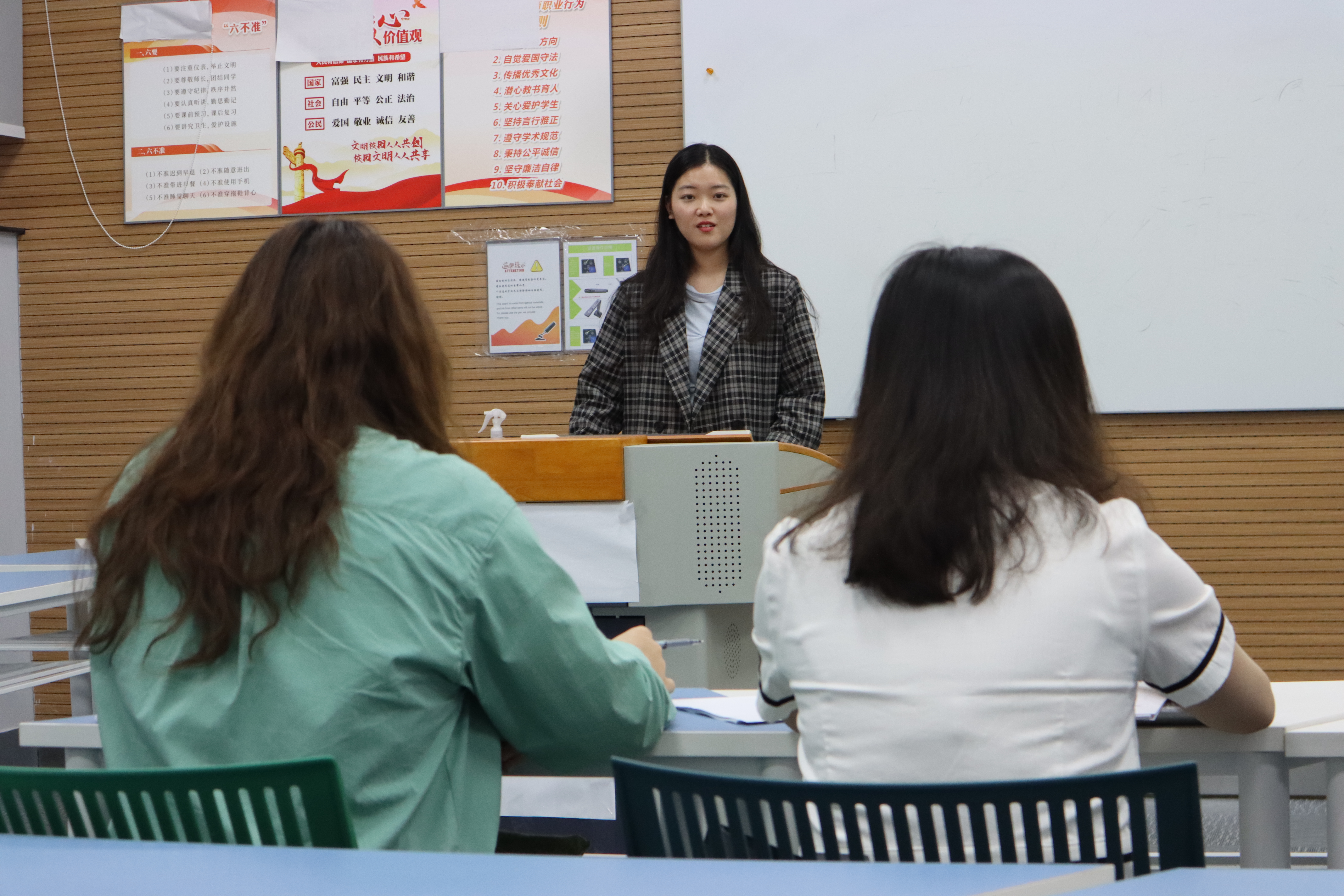 这一次的大学生职业生涯规划大赛从众多参赛者中遴选出来,最终,不同年级与不同专业的12名参赛者进行决赛。比赛中,同学们首先对根据自身的职业规划进行不超过五分钟的陈述,再由辅导员曲昊杨、辅导员杨潮、兼职辅导员林海逸与程书棋四人组成的的评委团队提出问题进行答辩。四位评委都对同学们的规划提出了明确且专业的设问与建议,在答辩过程中与同学们进行了有效交流。