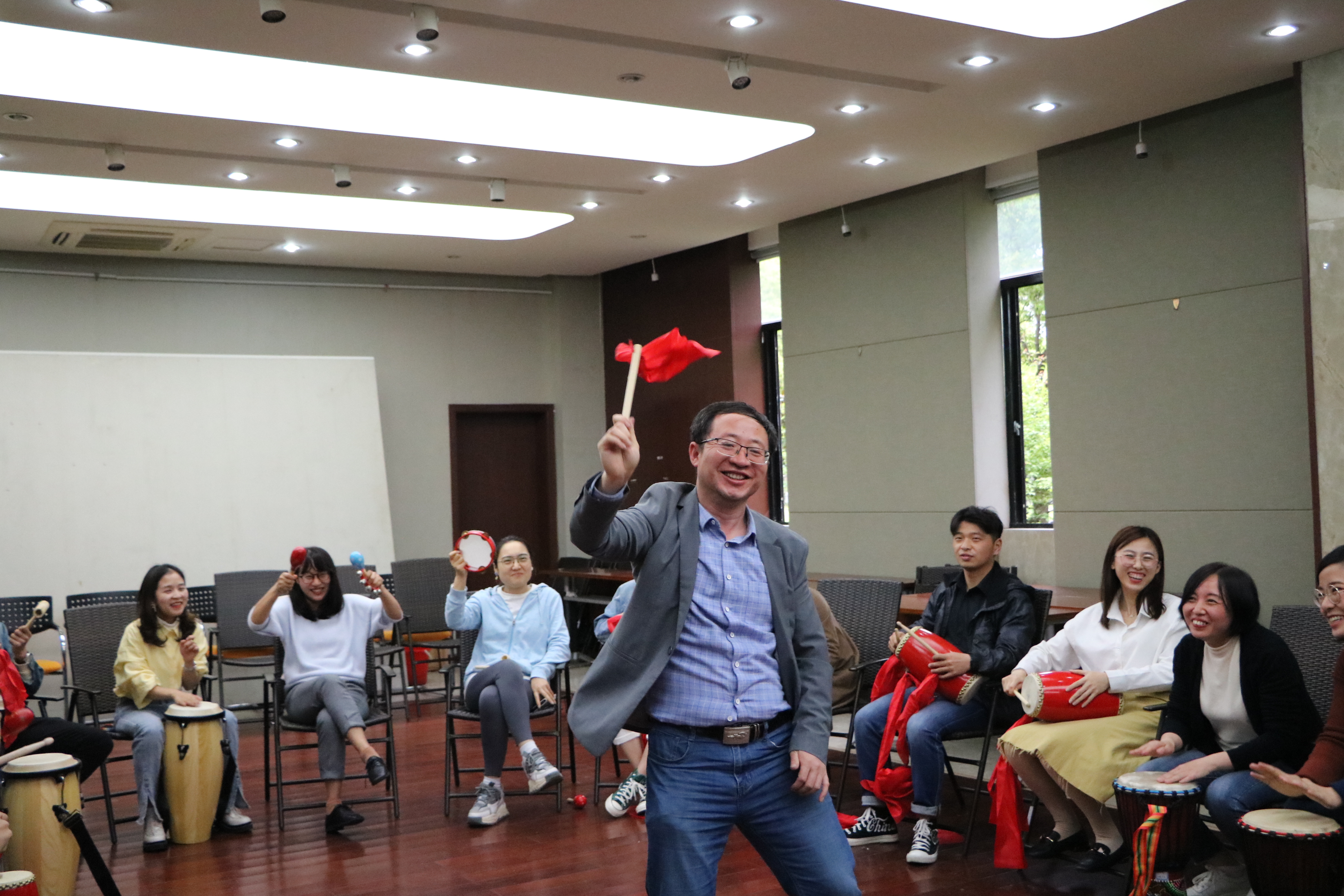 4月22日,SC101教室传来阵阵笑声和悦耳的鼓声,为释放辅导员的工作压力,进一步提升学工队伍的凝聚力,辅导员知行读书会开展“鼓圈”团体心理辅导活动。活动由传媒与法学院党委书记兼副院长朱小红带领,学校心理咨询中心、各学院辅导员二十余人参与本次活动。