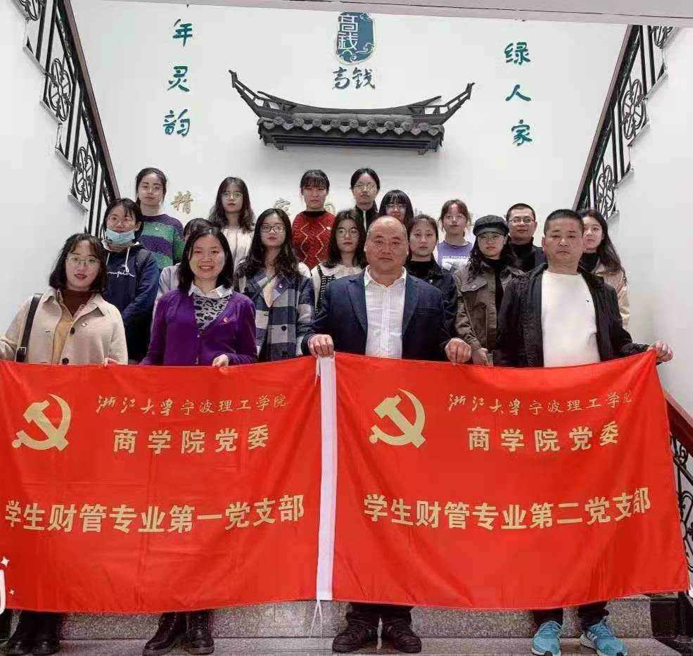 2021年3月27日上午,商学院学生财管专业第一党支部与第二党支部13名学生党员,在学院党委副书记周丽娟老师、辅导员胡亚老师的带领下,前往东钱湖高钱生态村进行交流和调研活动。