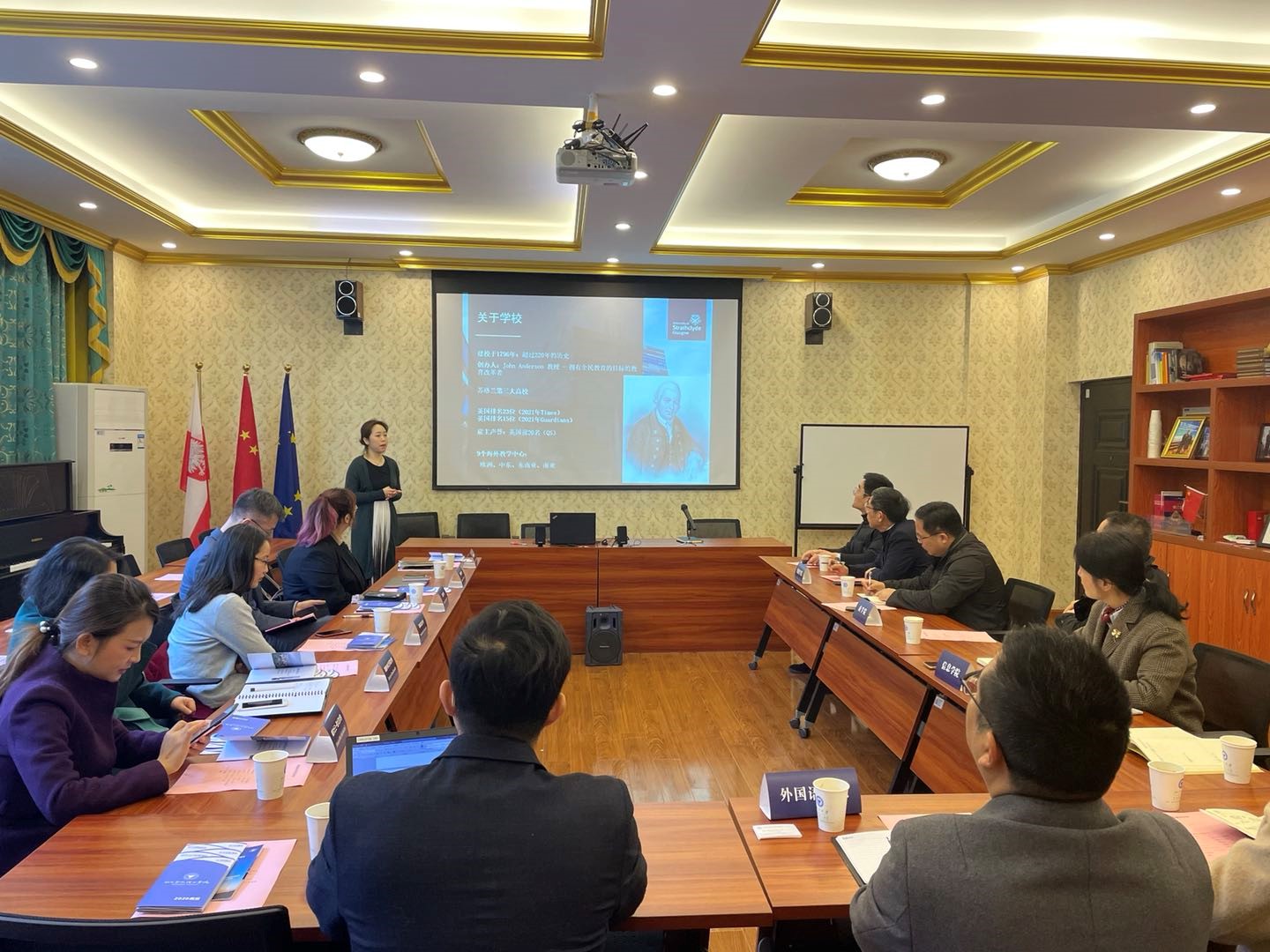 3月23日上午,英国文化教育协会教育合作发展主任胡雪彬一行应邀到我校交流访问。商学院副院长林承亮、波兰研究中心副主任胡海鹏、中东欧国际物流与服务学院负责人汪浩教授、数据学院张百灵教授在波兰研究中心会见了代表团并进行了座谈交流。会议由国合处陈颖主持。