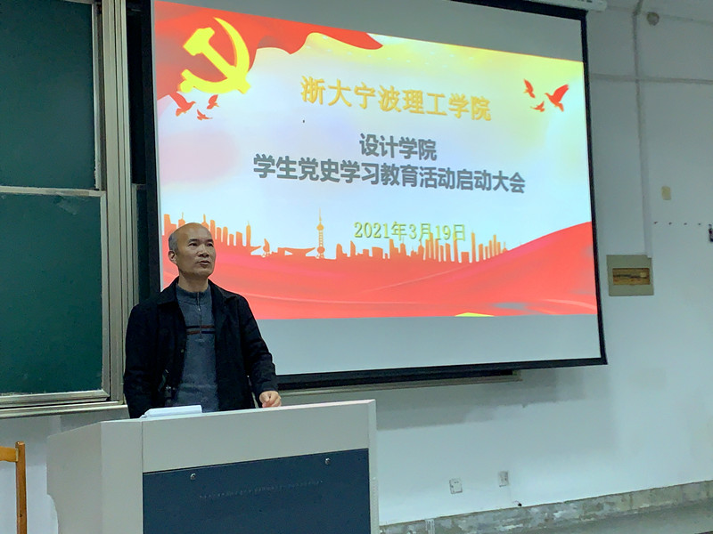3月19日下午,设计学院学生党史学习教育动员大会在SF106教室举行。学院党委副书记、纪委书记叶卫树老师作动员讲话,组织委员、思政主管邬旭东介绍学院党史学习教育方案。各学生党支部书记、全体学生党员、入党积极分子参加大会。