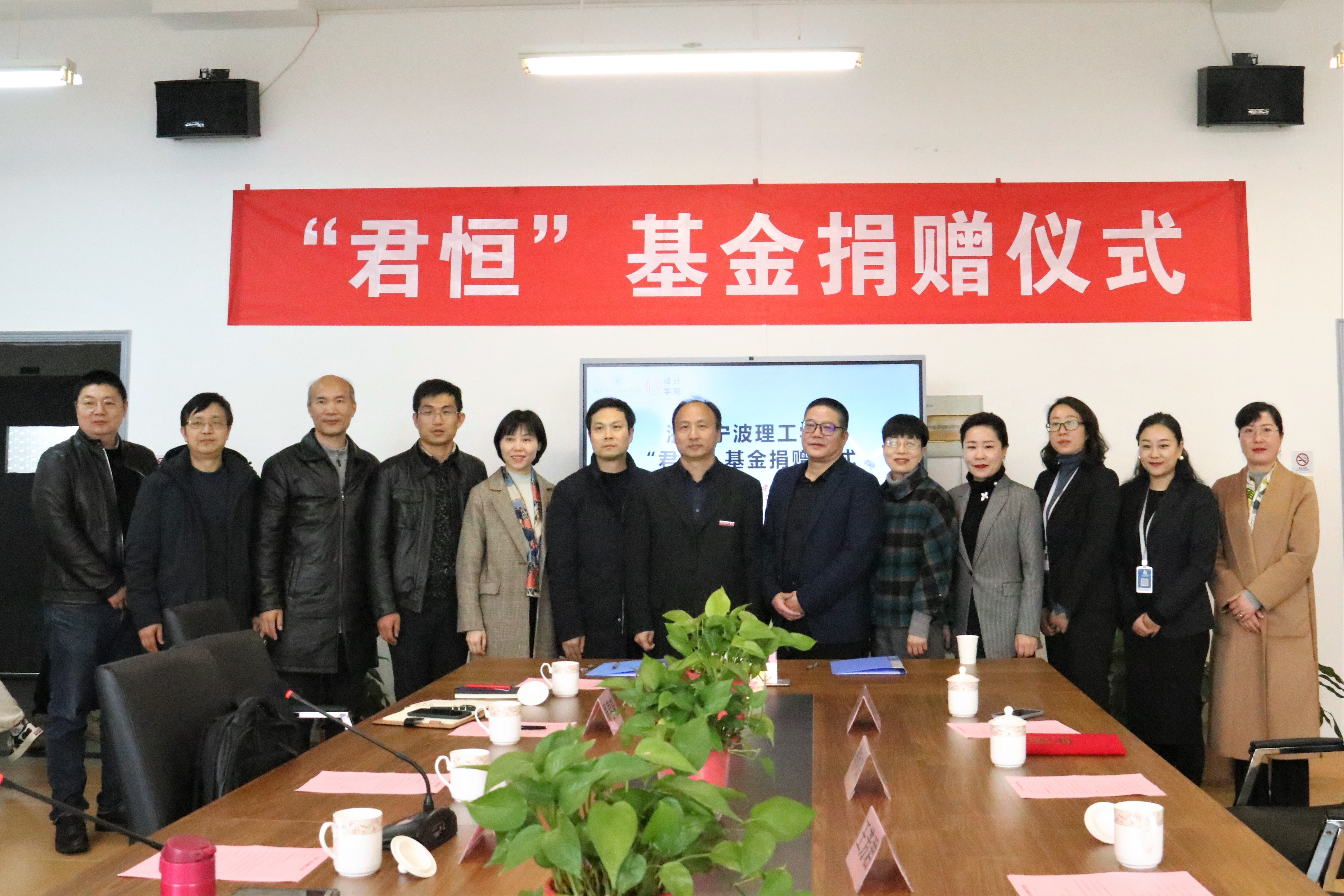 冯建波对宁波君恒智慧城市建设有限公司表示感谢,“君恒”基金是本学期开学以来我校收到的第一笔社会捐赠,希望能加强校企合作,进一步增强协同育人实效,推动产学研深度融合,合力构建人才培养体系,实现校企间互动与共同发展。