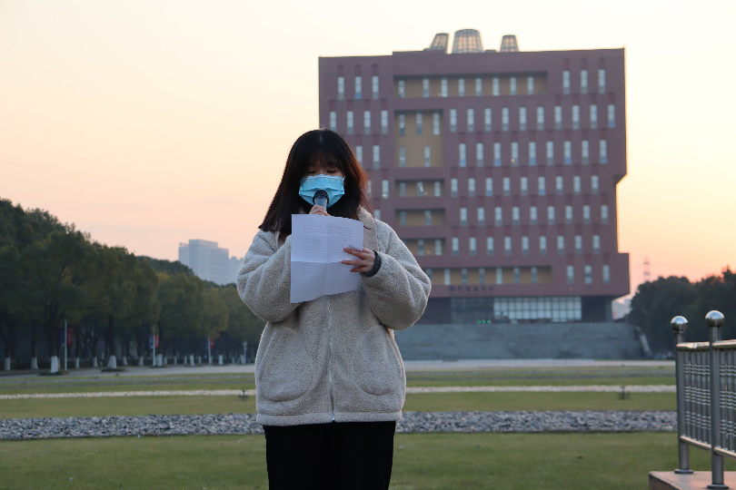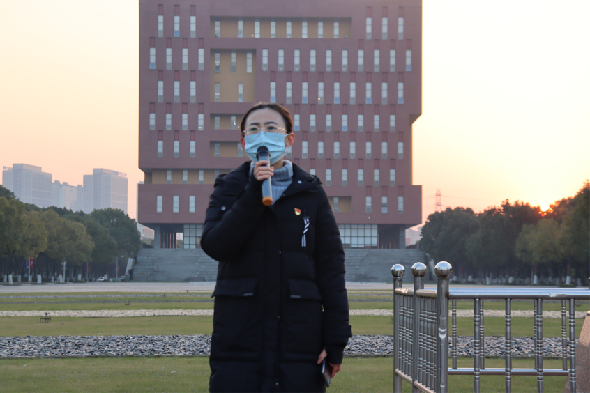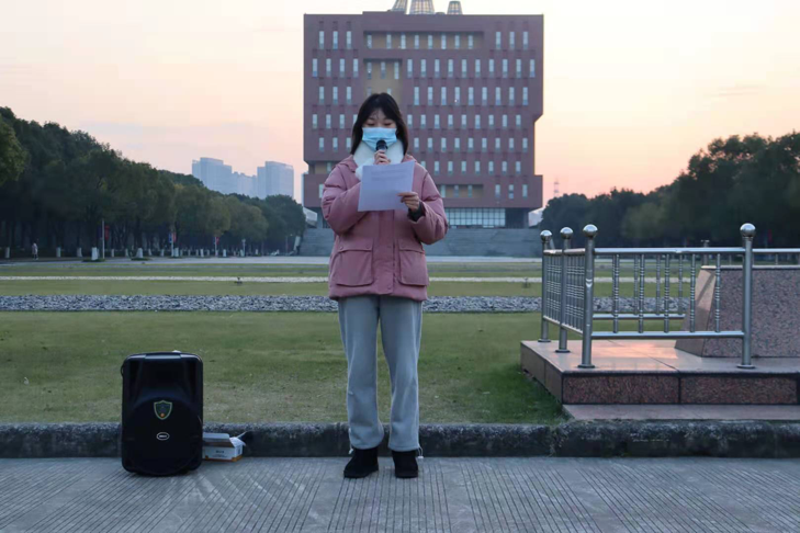 在全体师生的注目礼下,国旗护卫队队员们迈着队铿锵有力的脚步护送国旗进场,伴随庄严的中华人民共和国国歌,五星红旗冉冉升起,为冬日的浙大宁理校园增添了一丝希望的光辉。学院团委副书记宋朝和学生会执行主席顾子惠结合对党的十九届五中全会精神学习进行国旗下发言,指出当下国家正处于百年未有之大变局,作为青年大学生要不断努力拼搏,为建设社会主义现代化国家贡献自己的力量。李倩倩带来“国旗下的一堂课”,她强调传媒与法学子要把爱国情、强国志转变为报国行,将理论与实践相结合,关注社会变化,开拓视野;充分发挥团学干部的作用,以身作则,锻炼自我,成长成才。李倩倩还提醒大家要继续做好防疫措施,期末诚信应考。