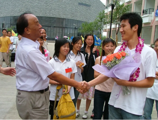 学校首任院长俞庆森亲自迎接第一万名学生石圣艮(2004年)