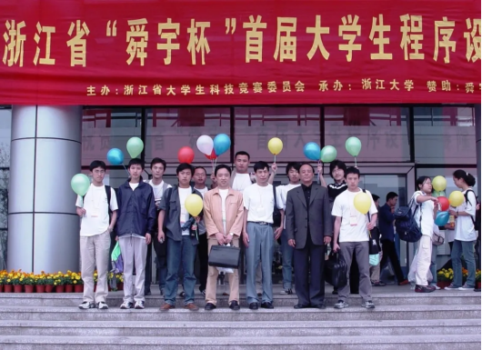 学校首任院长俞庆森(第一排右二)看望并与参加浙江省首届大学生程序设计大赛的师生合影(2004年)