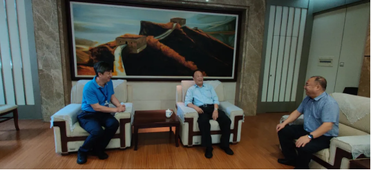 学校首任院长俞庆森(中)再次回到浙大宁波理工学院与胡征宇书记(左一)、李凤旺副书记(右一)座谈交流(2021年6月)