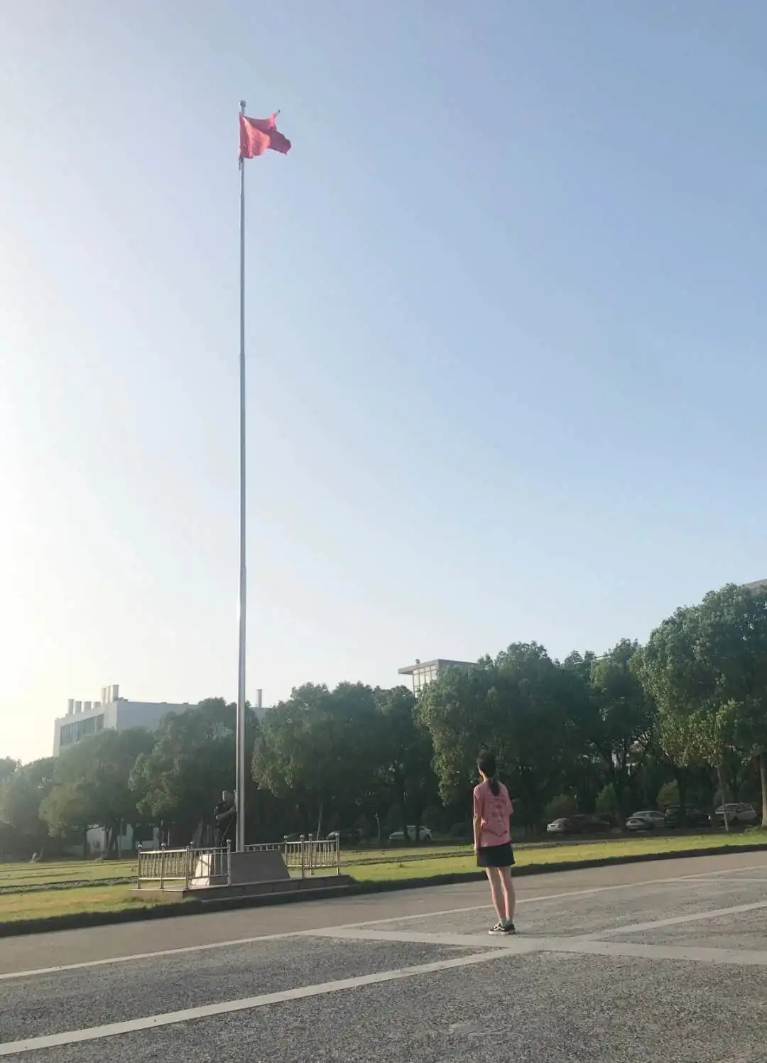 我校信息学院电信152班团支部书记王竹圆便是参与本次升旗仪式的主人公。去年报名参加两项计划的王竹园,时隔一年回到熟悉的校园,望着飘扬的国旗,较之去年愈加坚定了理想信念。
