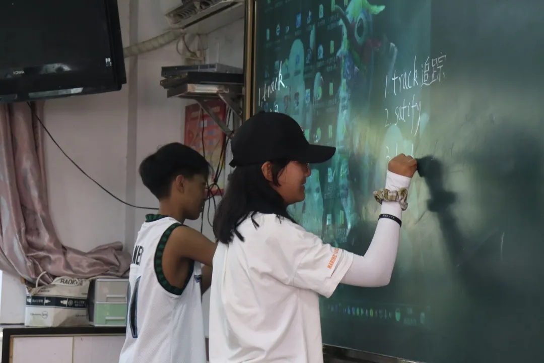 课前,成员们精心策划课程,编写教学大纲,安排了多种教学主题,以期望带领学生多方面、多角度地了解英语,培养学生对英语的兴趣。课堂上,成员们积极利用视频、音乐等资源以及接龙、小组比拼等趣味游戏,充分调动上课氛围,在互动中增强学生知识记忆点,鼓励学生积极开口说英语,成为敢于表达自己、充满自信的人。“我学到了很多新知识,比如英语常识、音标,还学会了英文歌。”初二5班次仁顿登说道。