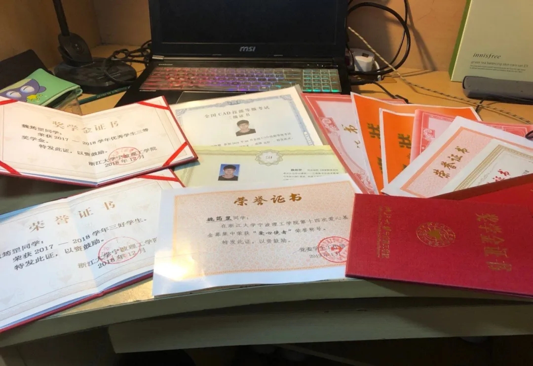 不仅如此,大学四年他还考取了全国英语六级证书、全国CAD二级证书、全国三维建模工程师证书。