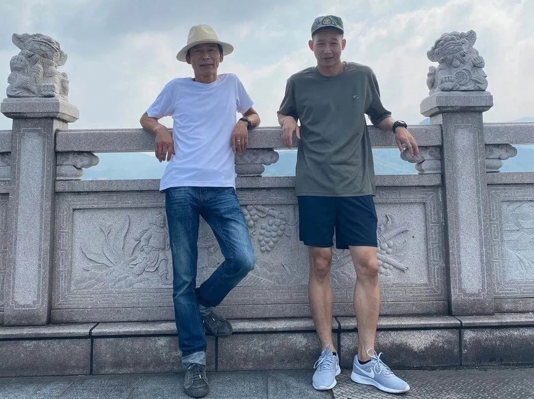 入伍前魏筠罡(右)与父亲合影。