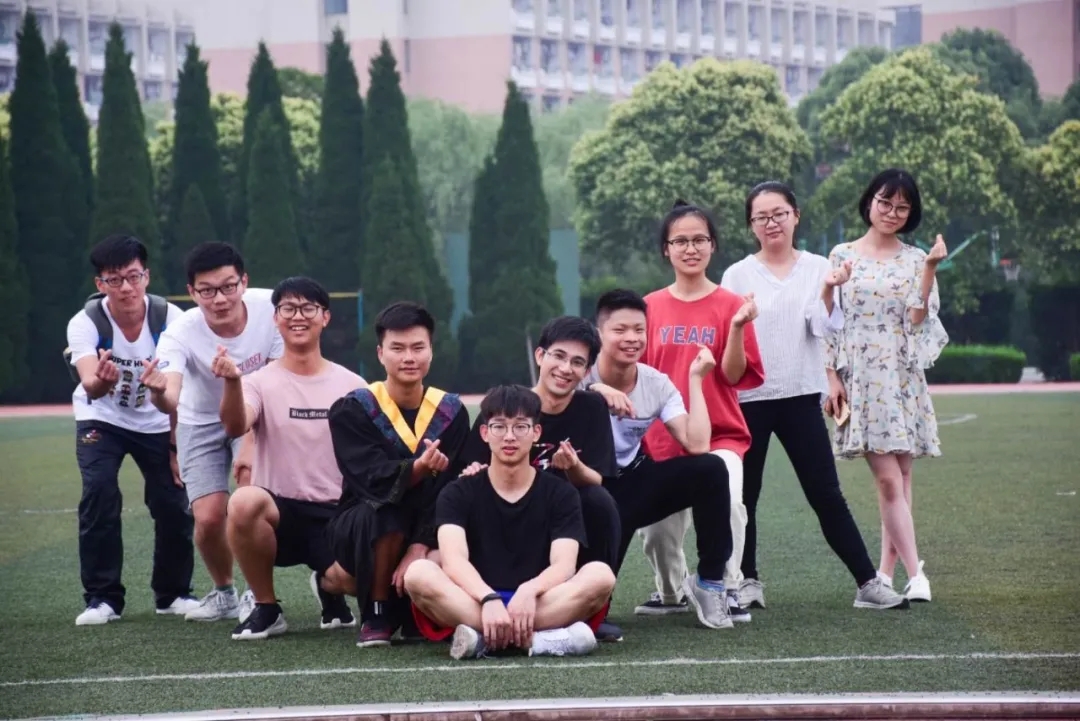 魏筠罡(左五)与班内同学合影。