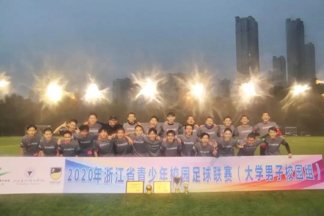 暮色降临,雨还没停,绿茵场上的这群热血少年们欢呼雀跃。他们肩搭肩,笑口大开,留下了一张潮湿而激情的合照,时间停在这一刻。11月20日,对这群在冷冬里身着单薄球衣还不感觉到冷的少年们而言,是历史性的一天。他们,学校男子足球队,在2020年浙江省青少年校园足球联赛大学男子校园B组中一路过关斩将,夺得B组冠军,成功晋级A组,并包揽了体育道德风尚奖、最佳球员奖、最佳守门员奖等奖项。本次夺冠,是我校男子足球队成立以来首次晋级省级决赛并获省级冠军。