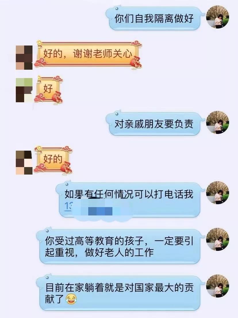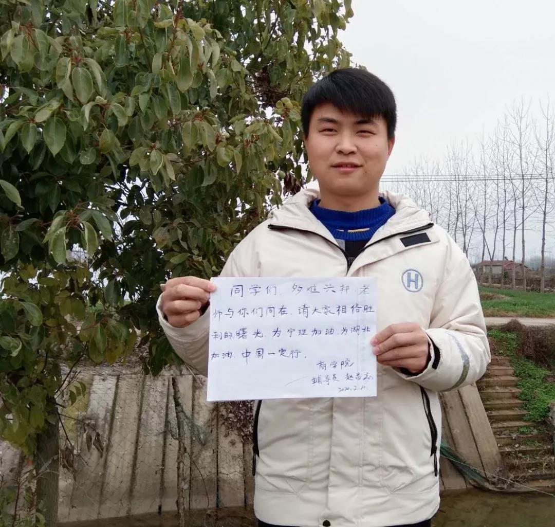 令赵老师感到欣慰的是同学们都认真配合工作,“老师,辛苦了”“赵老师,你自己也要注意身体啊!”同学们一句温暖的问候让他宽慰与感动。他想说,同学们都是好样的,要坚信疫情总会过去,春天一定会来到,让我们一起为武汉加油!为湖北加油!为中国加油!