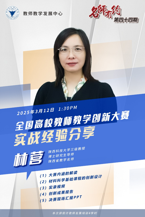 主讲嘉宾:林营,陕西科技大学三级教授,博士研究生导师,陕西省教学名师。全国高校教师教学创新大赛一等奖获得者,国家级线上线下混合式一流课程负责人,国家级教学成果二等奖获得者。陕西省课程思政示范课程和教学团队负责人,陕西省教学改革重点攻关项目负责人。主编教材获批陕西省高等教育优秀教材特等奖。高校在线开放课程联盟联席会慕课十年典型案例获得者。