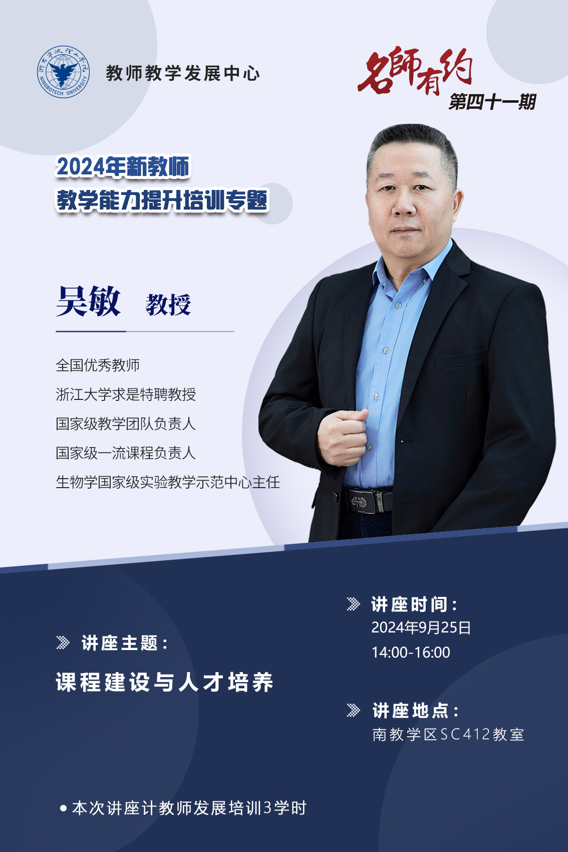主讲嘉宾:吴敏,浙江大学求是特聘教授,国家级教学名师,全国优秀教师,国家级教学团队负责人,国家级一流课程负责人,生物学国家级实验教学示范中心主任