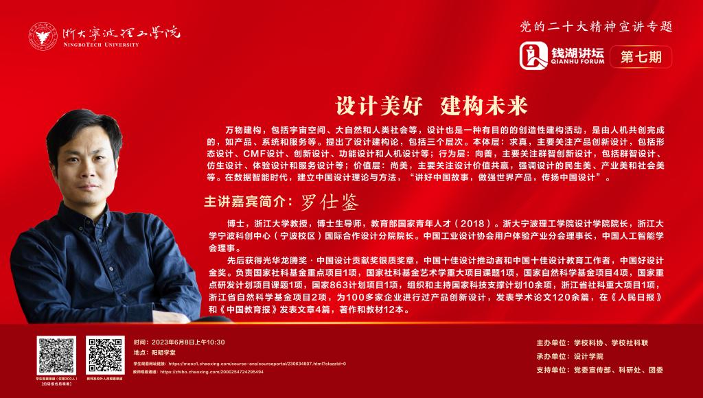1.本期“钱湖讲坛”由设计学院承办;现场参加师生请提前20分钟到达会场;现场师生控制在20人以内。