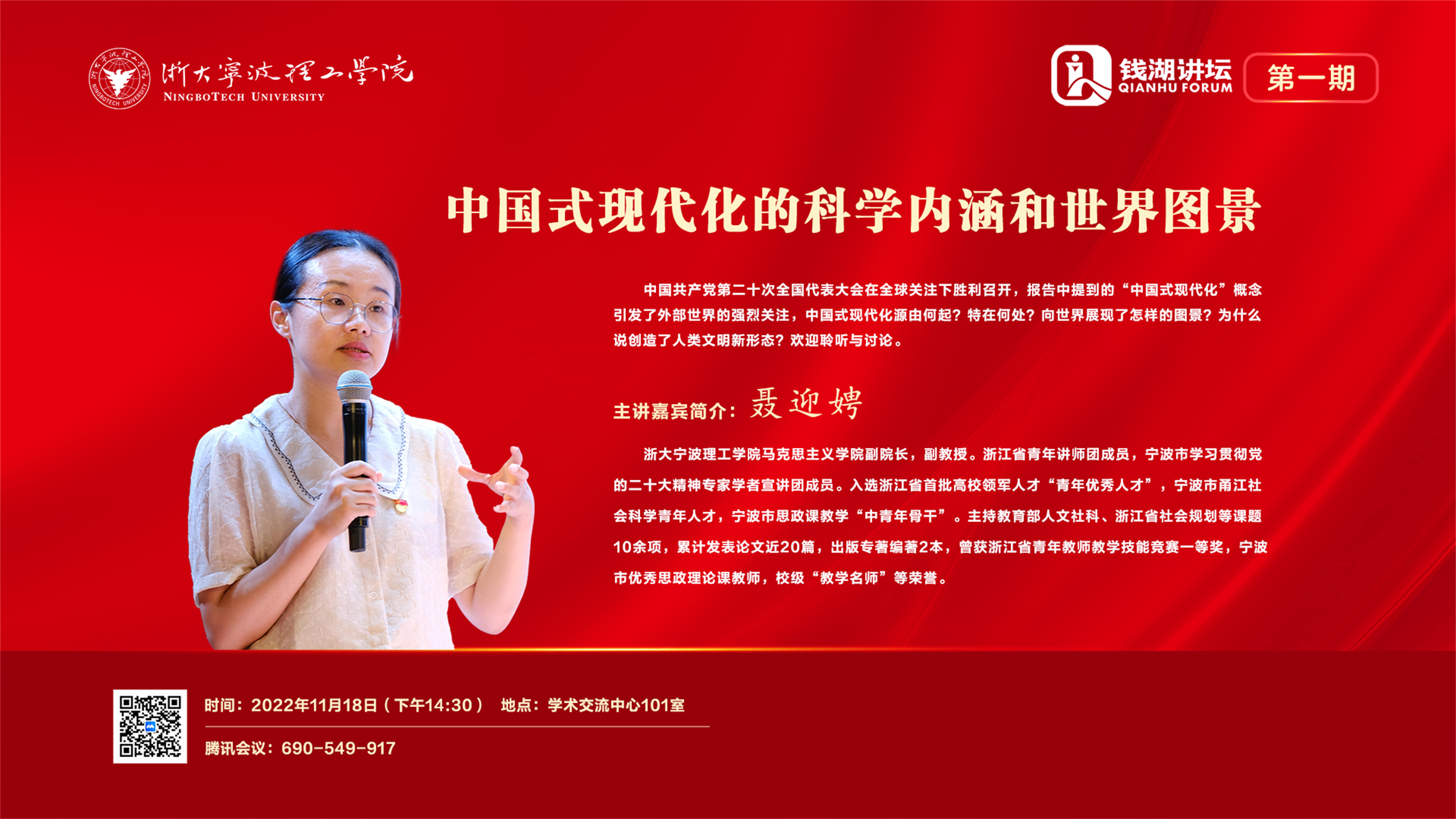 聂迎娉,浙大宁波理工学院马克思主义学院副院长、副教授。浙江省青年讲师团成员,宁波市学习贯彻党的二十大精神专家学者宣讲团成员。入选浙江省首批高校领军人才“青年优秀人才”,宁波市甬江社会科学青年人才,宁波市思政课教学“中青年骨干”。主持教育部人文社科、浙江省社会规划等课题10余项,累计发表论文近20篇,出版专著编著2本,曾获浙江省青年教师教学技能竞赛一等奖,宁波市优秀思政理论课教师,校级“教学名师”等荣誉。