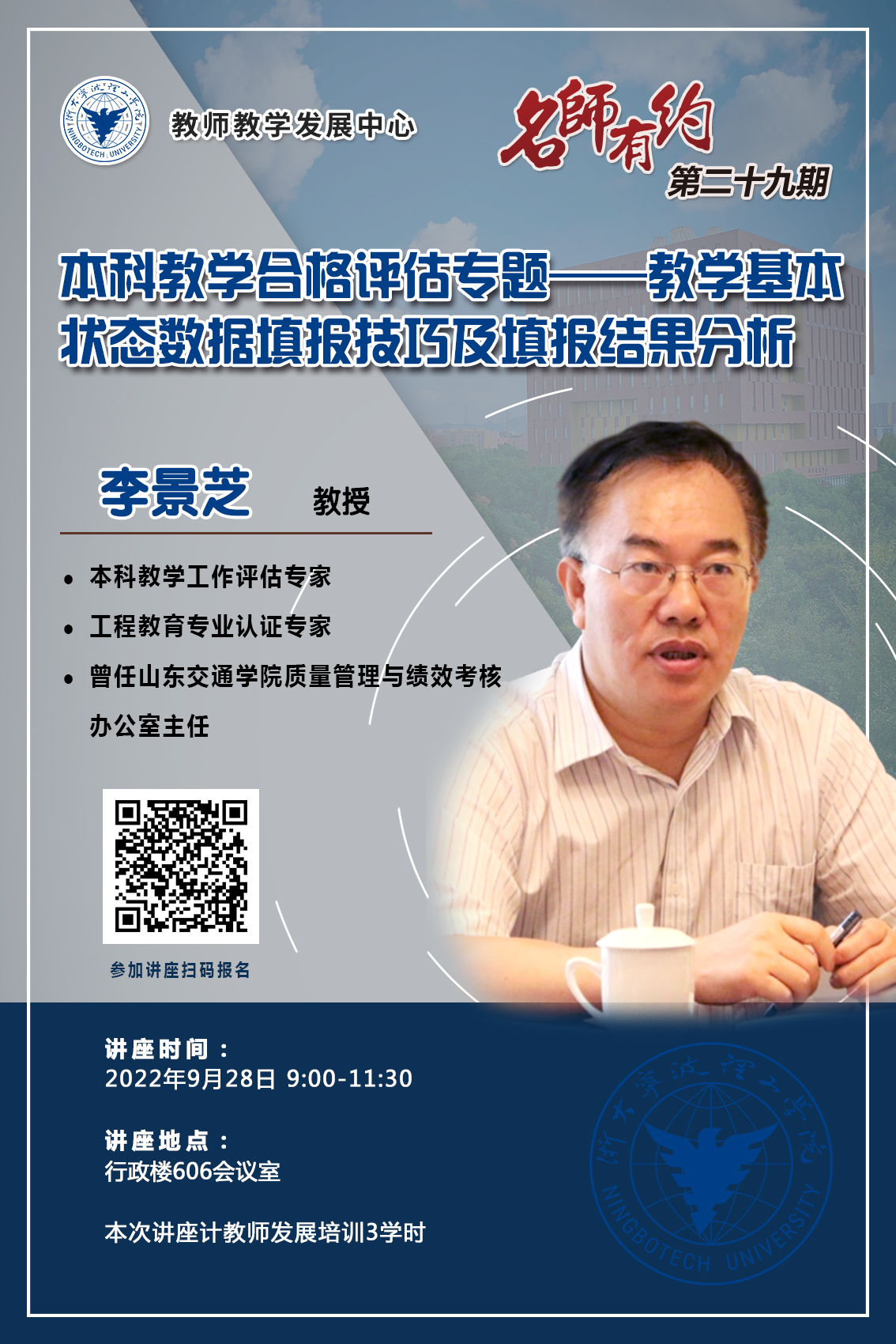 讲座内容简介:本科教学合格评估基本工作要求介绍,高等教育质量监测国家数据平台教学基本状态数据填报技巧及去年填报结果分析。