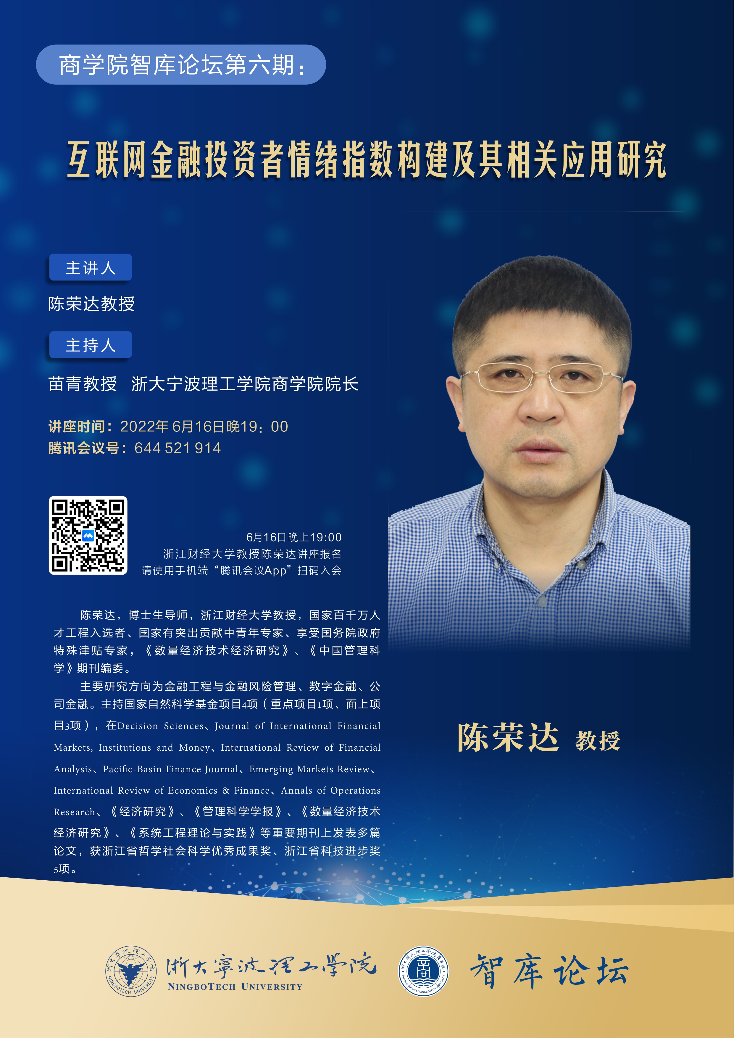 陈荣达,博士生导师,浙江财经大学教授,国家百千万人才工程入选者、国家有突出贡献中青年专家、享受国务院政府特殊津贴专家,《数量经济技术经济研究》、《中国管理科学》期刊编委。