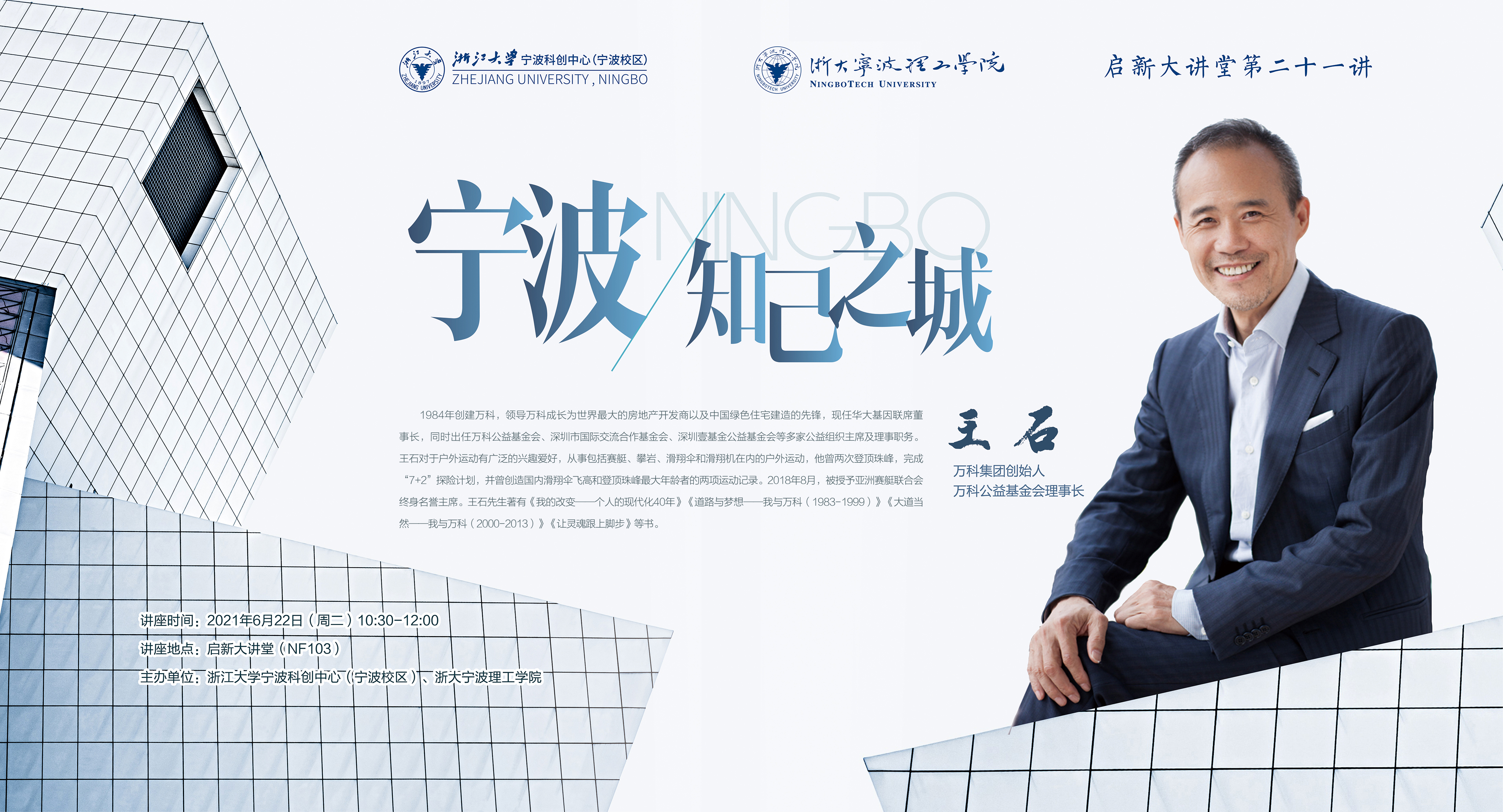 主讲嘉宾:王石 万科集团创始人 万科公益基金会理事长