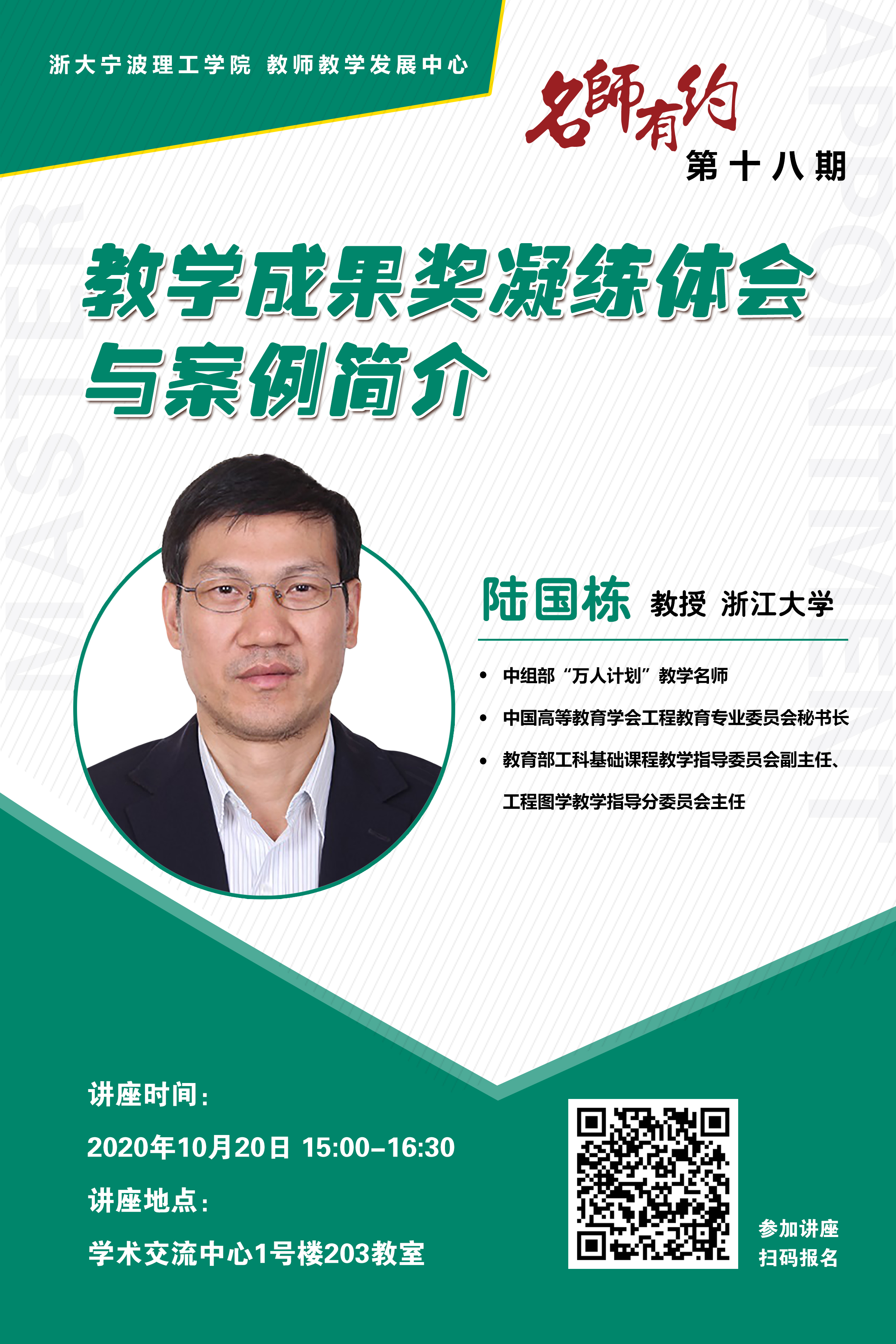 1. 请参加讲座的教师微信扫码报名,准时入场。