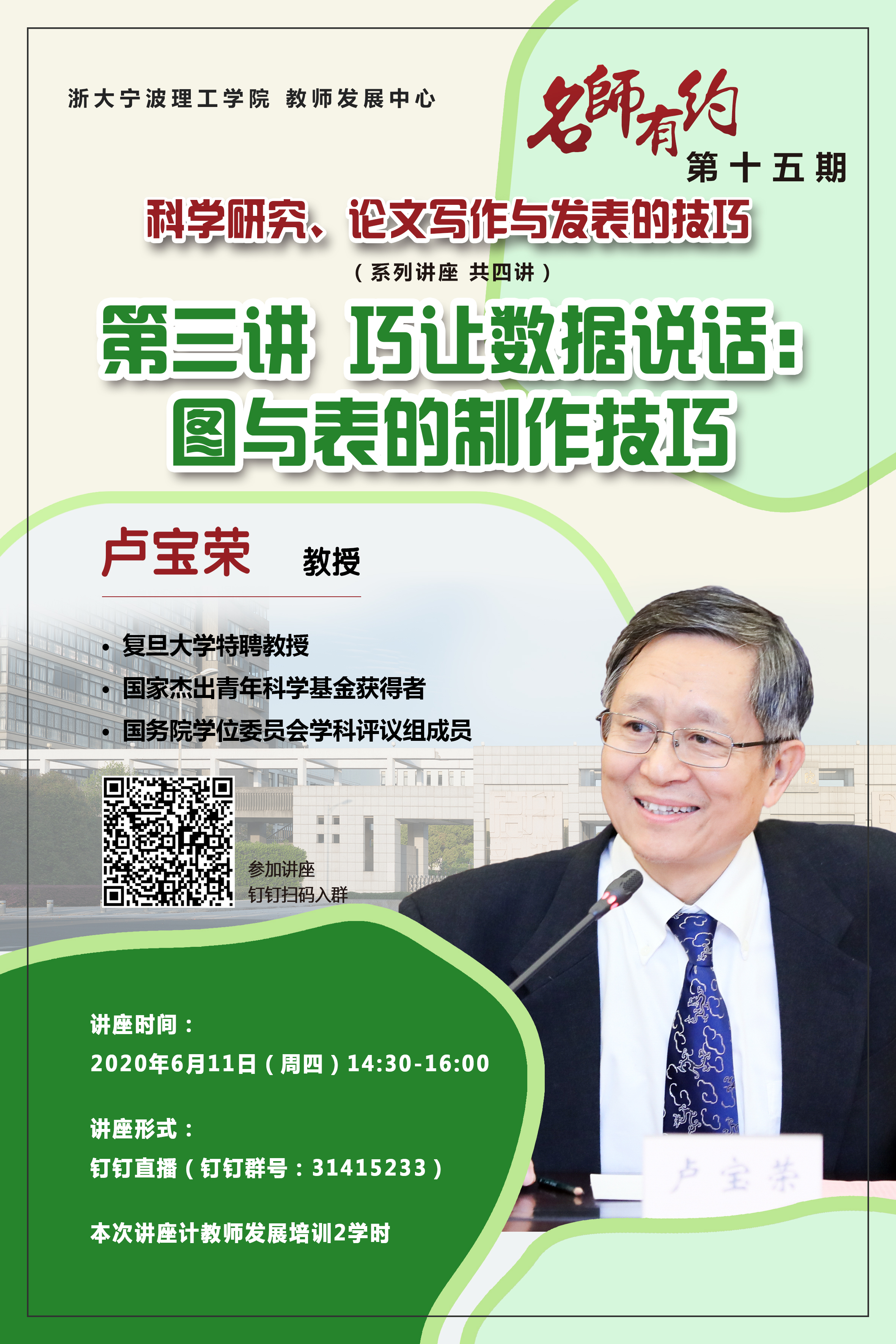 学校“名师有约”自5月下旬起推出了“科学研究、论文写作与发表的技巧”系列讲座,特邀复旦大学特聘教授卢宝荣老师担任主讲嘉宾。该讲座共分四讲,第一讲“科学研究方法”和第二讲“论文写作精要”已分别于5月20日、5月29日进行了直播,以下为第三讲的信息,欢迎广大教师聆听。(第四讲“成功发表论文”将于后期推出,敬请关注。)