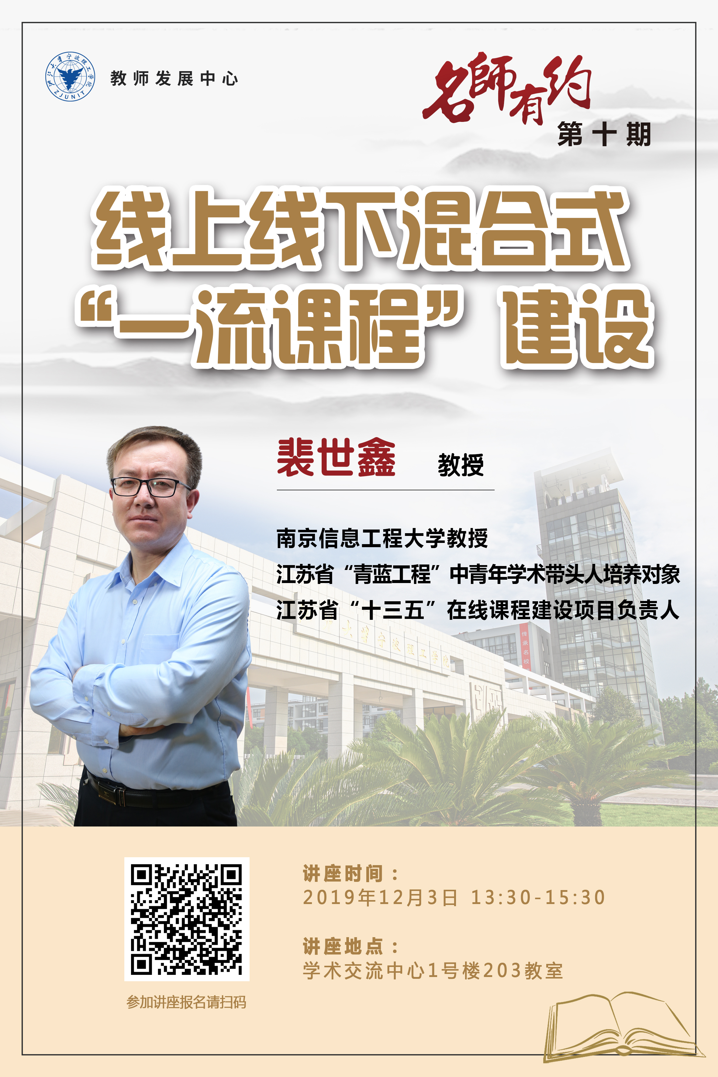 主讲嘉宾:裴世鑫 南京信息工程大学教授,江苏省“青蓝工程”中青年学术带头人培养对象,江苏省“十三五”在线课程建设项目负责人