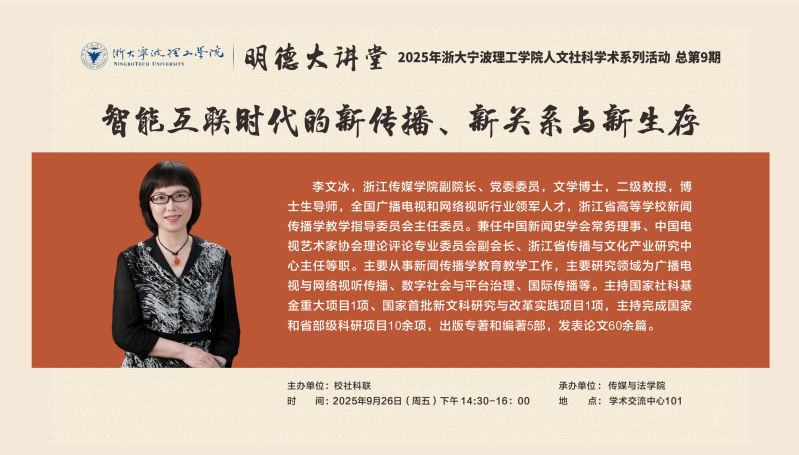 李文冰 浙江传媒学院副校长、党委委员、二级教授