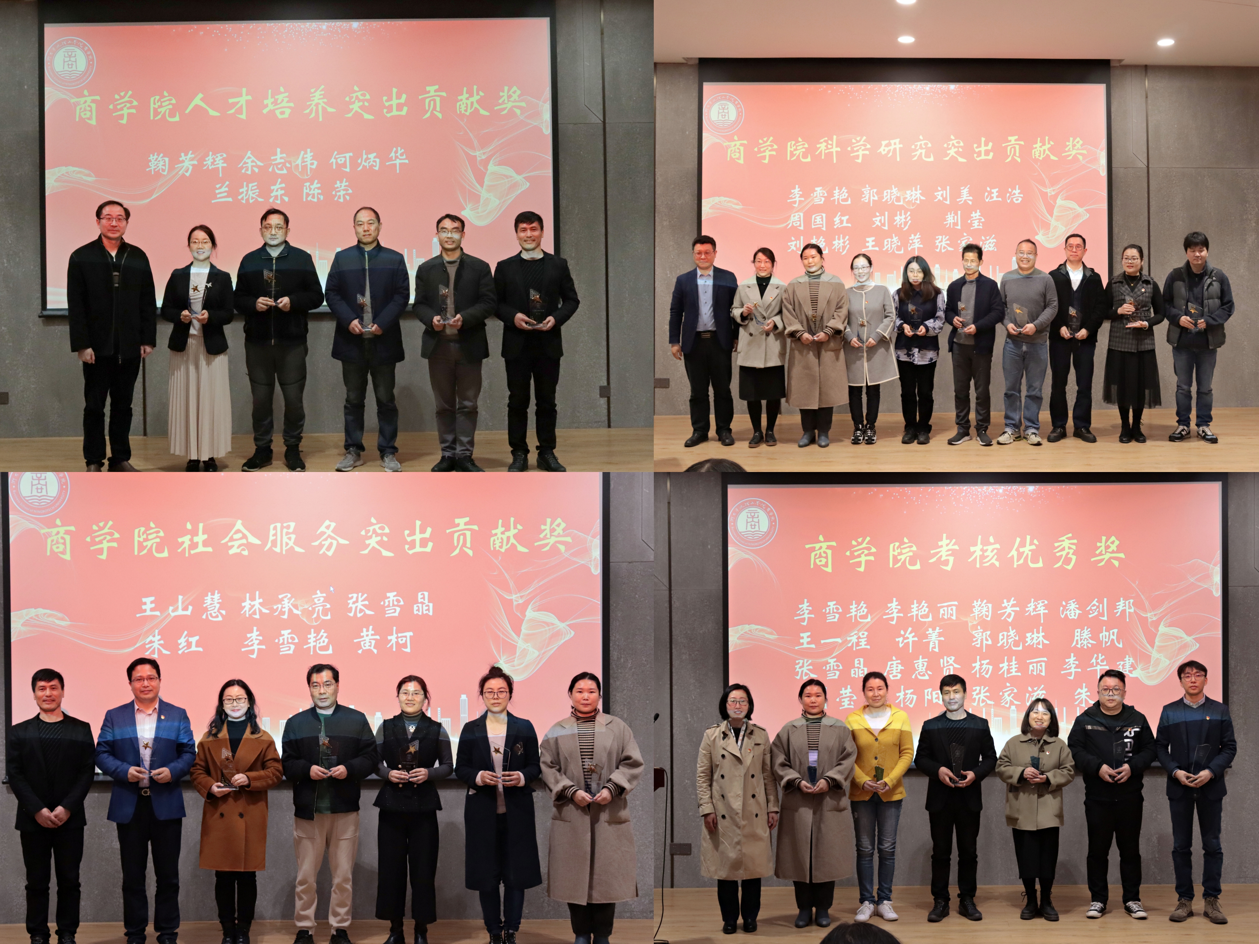 表彰仪式上,学院为获得省市级教学成果奖、省一流课程及省课程思政示范基层教学组织负责人颁发了人才培养突出贡献奖;为获批国家级项目、发表一级期刊、SSCI二区以上论文的教师颁发了科学研究突出贡献奖;为获得省部级以上领导肯定性批示、外源科研到款经费50万元以上的教师颁发了社会服务突出贡献奖;为获得市级以上荣誉和年度考核优秀的教师颁发了奖项。