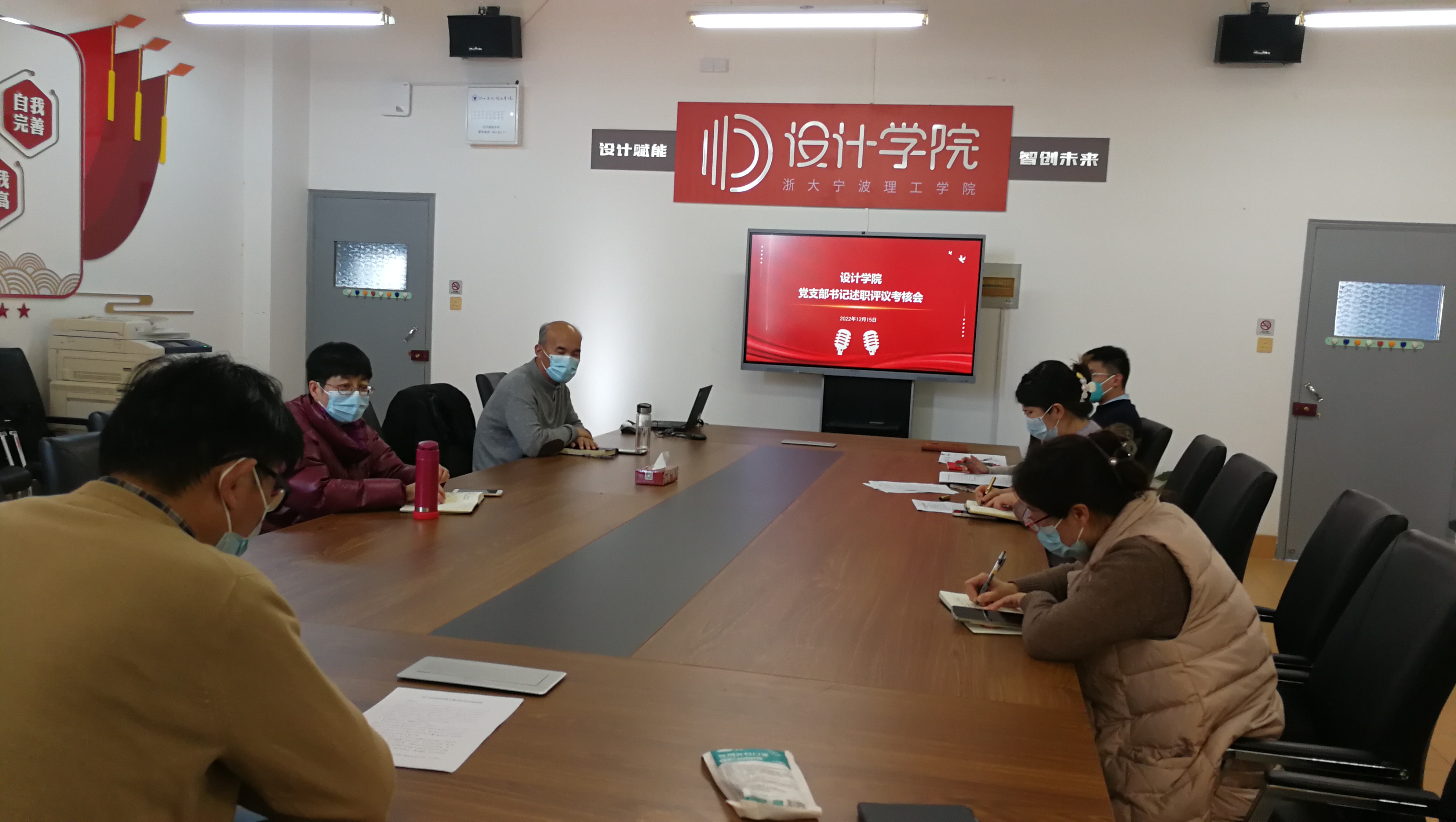 12月15日下午,设计学院党委在SE306举行2022年度党支部书记述职评议考核会。学院党委委员、全体党支部书记通过线上线下相结合的方式参加会议,会议由学院党委书记吴春主持。