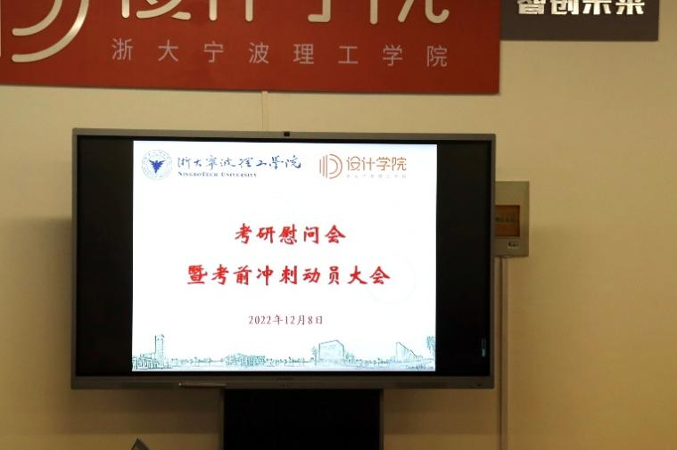 12月8日,设计学院于SE306召开考研慰问会暨考前冲刺动员大会。设计学院党委书记吴春,党委副书记、纪委书记叶卫树,副院长赵建国,思政主管金慧燕,副主管高雅姝,团委书记周鑫磊及2023届考研学子参会。大会由高雅姝主持。