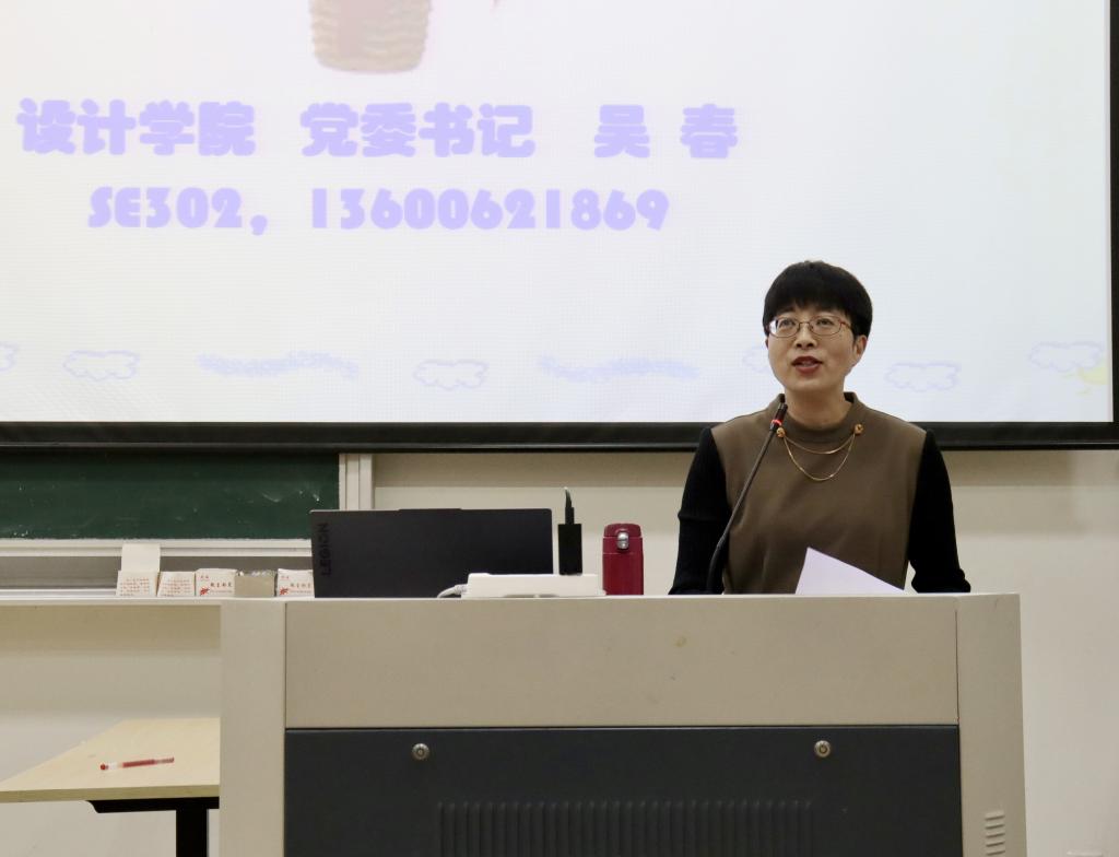 学院党委书记吴春以“青春是用来奋斗的——谈学生干部应具备的素质能力”为主题讲授“鸿鹄学舍”培训班第一讲。她以“能说,能写,能干,能思”八字引出本次课程的主要内容,提出学生干部应具备的三方面素质、六方面意识、两方面能力,并给予学生干部工作方法上的建议和要求。她带领同学们学习了习近平总书记的青春岁月,袁隆平以奋斗为基础的“超级水稻”之梦,锂电池之父古迪纳夫大器晚成以一生的奋斗诠释自我的价值,寄语全体团学青干部以良好的思想道德素质、业务素质和身心素质,增强大局意识、服务意识,提高学习能力和行动能力,充分发挥学生干部的主人翁精神。她希望同学们,作为新时代青年,坚守以天下为己任,以真理为依归的初心,在实干中提升自我,更好地为学生服务,做到“对上以敬,对事以真,对人以和”。“青年之字典,无‘困难’之字,青年之口头无‘障碍’之语。”吴春老师最后用李大钊先生的话激励每位学生,希望每名设计学子都成为讲真话、办真事、有真情的设计人!