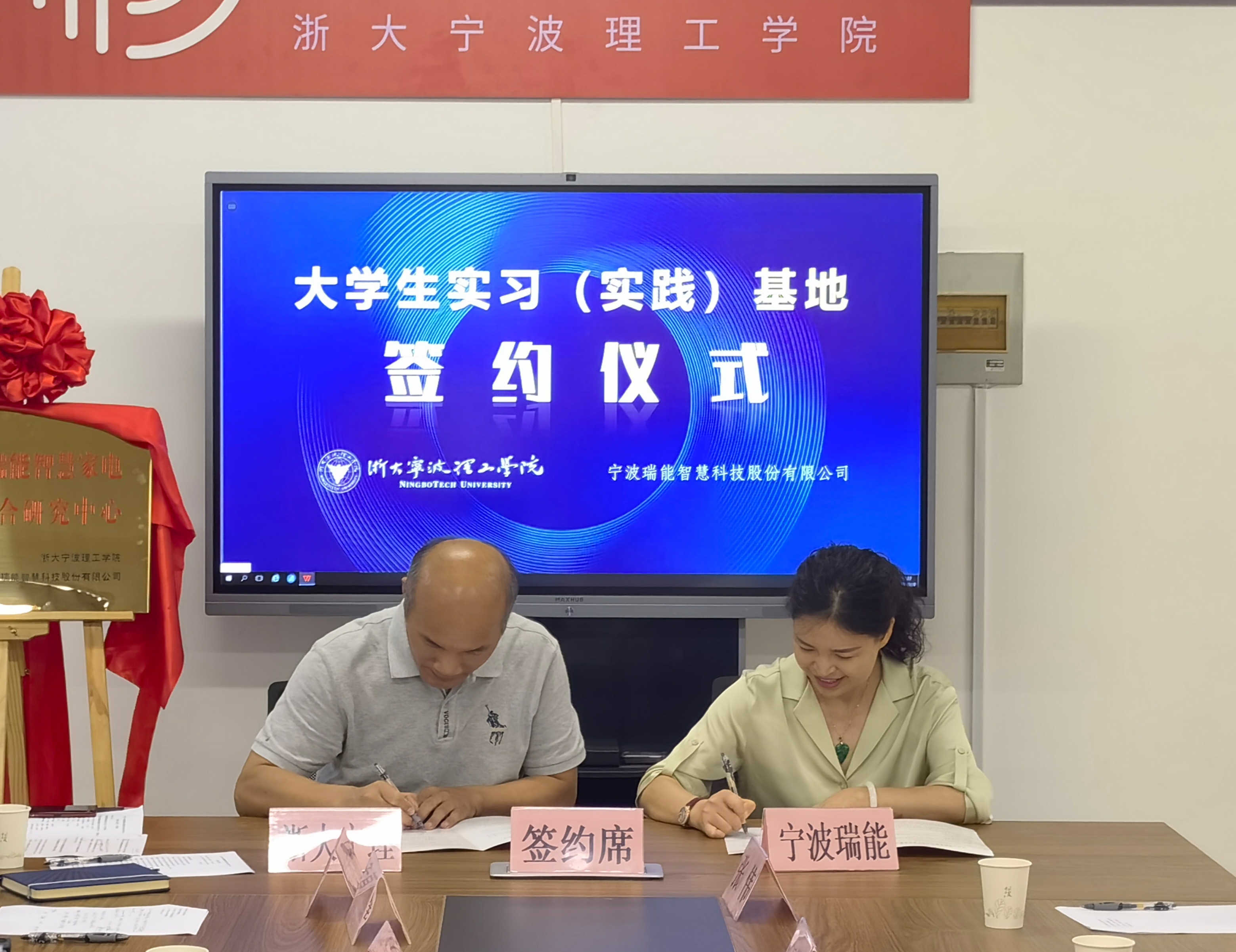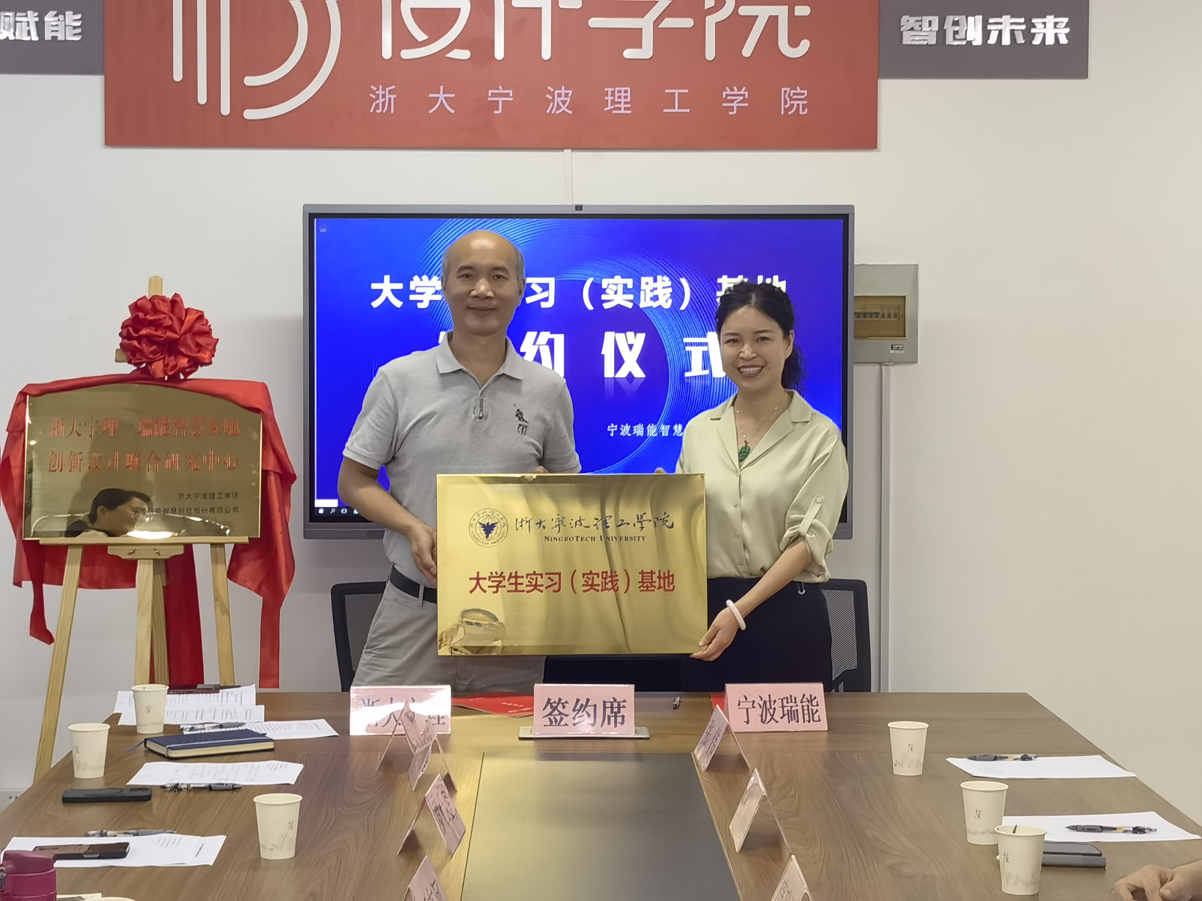 9月29日上午,由浙大宁波理工学院与宁波瑞能智慧科技股份有限公司共建的“浙大宁理—瑞能智慧家电创新设计联合研究中心”正式签约成立。签约仪式在浙大宁波理工学院设计学院SE306会议室举行。宁波瑞能智慧科技股份有限公司董事长唐瑞峰、总经理王蓉萍、国际贸易部部长张伟、研发部部长陈红伟,浙大宁波理工学院科研处副处长于在河、地方合作处副主管潘锋、设计学院长罗仕鉴、党委书记吴春、副书记叶卫树、副院长赵建国出席,设计学院工业设计研究所相关教师参加签约仪式。仪式由设计学院院长助理夏秀敏主持。